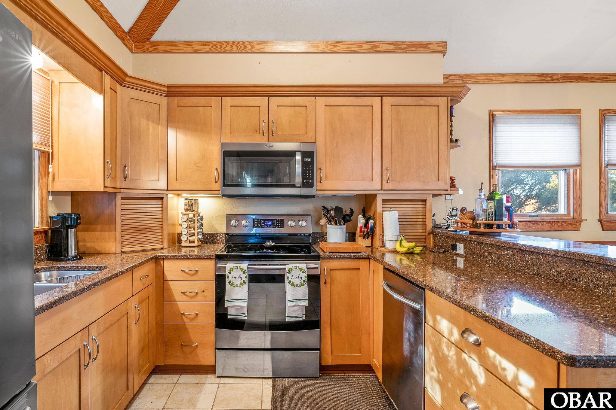 On the mid-level, you'll find four of the home's bedrooms, including a spacious primary suite with wood flooring, a luxurious ensuite bath, and access to the covered deck. One of the additional bedrooms also features an ensuite bath, while another is currently used as an office/exercise room. A full hall bath completes this level. The ground floor offers flexibility with a smart layout that functions seamlessly as part of the main home or as a separate in-law suite. This level includes a welcoming foyer, laundry room, full bath, a game room with a pool table (conveys), kitchenette with mini fridge (also conveys), and a large storage closet. Sliding doors open directly to the pool area, making it ideal for entertaining. (pool furniture and pool equipment convey). Currently used as a game room this can easily double as a fifth bedroom. This sought-after location provides easy access to multiple Southern Shores beaches, scenic walking paths, and parks. Enjoy nearby shopping and dining in the Town of Duck. Whether you're looking for a primary residence, second home, or investment property, this home is a perfect fit. Optional membership to the Southern Shores Civic Association is available for $70/year for residents and second-home owners, or $100/year for rental property owners. Boat Club and racquet sports memberships are available for an additional fee. Visit sscaobx.org for more information. Home is being sold unfurnished, with select items that convey—see the Bill of Sale in the Associated Documents for details. Note - many personal items have been removed from walls, floors, counters, table tops, dressers, Great Room and Game Room for photos. These items have been put back in place and will be visible at in-person showings.