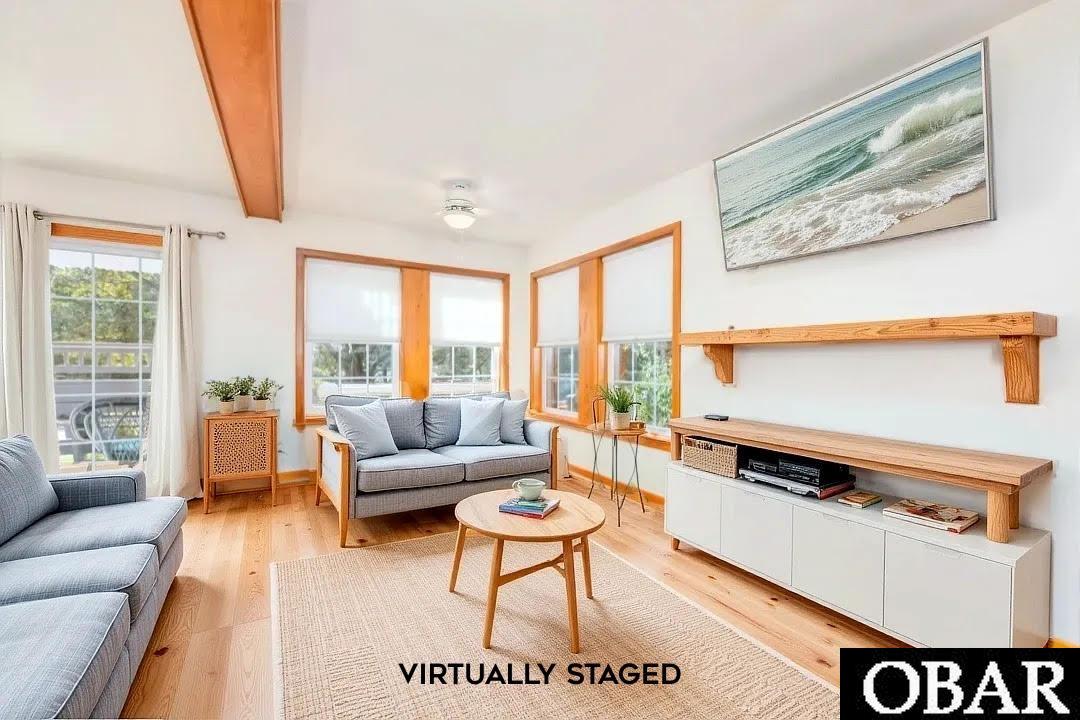 Nestled with some live oaks, this Colington charmer is ready to welcome you home. This property features 2 primary suites, one on each level. The rear addition was thoughtfully designed to connect to the original home and 2 staircases allow for privacy & flexibility! Check out the virtual tour and floor plan for a detailed look at the well-designed space. Situated on an oversized lot on a quiet cul-de-sac at the edge of the sound, this home offers a truly special lifestyle.
