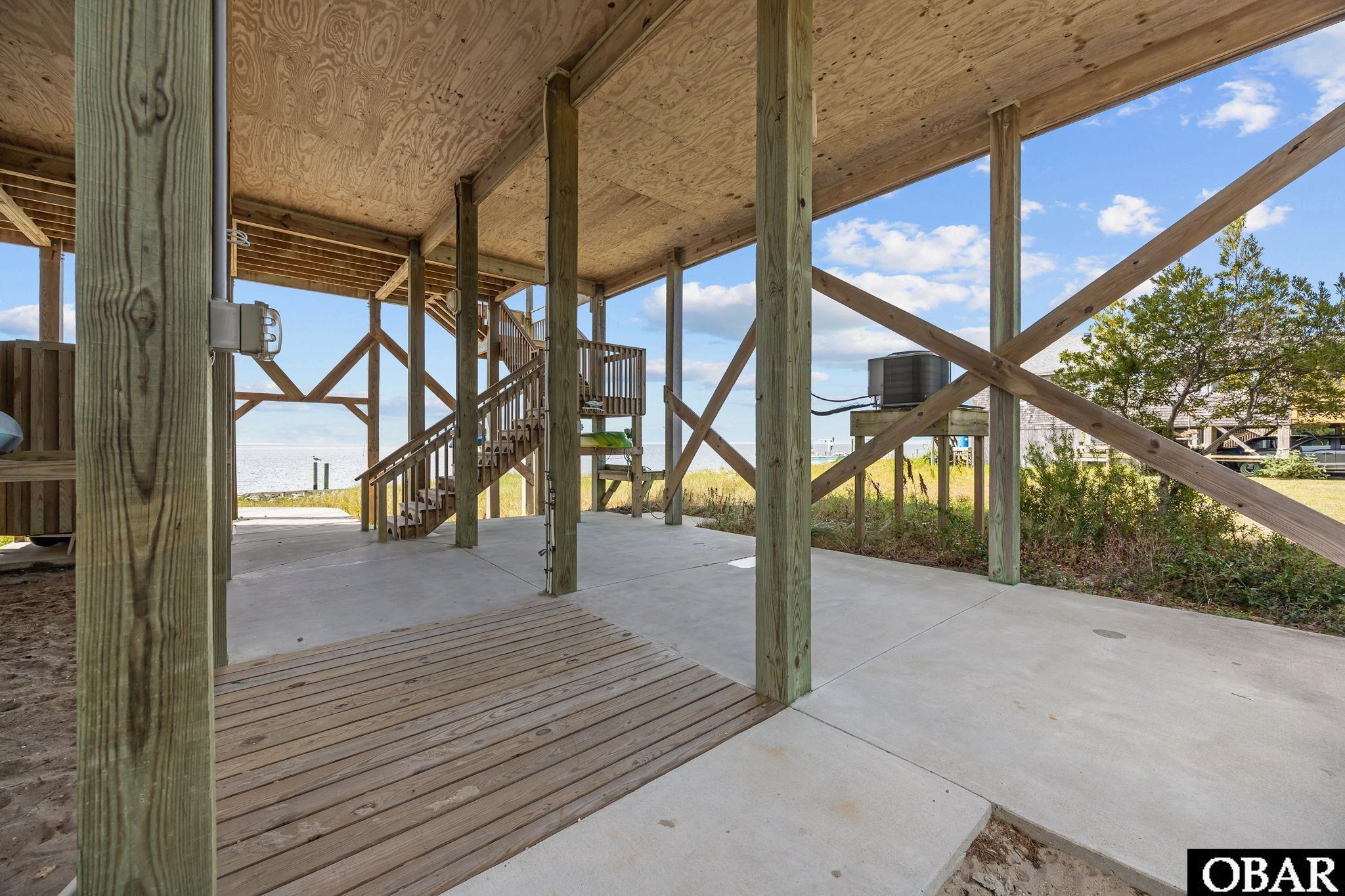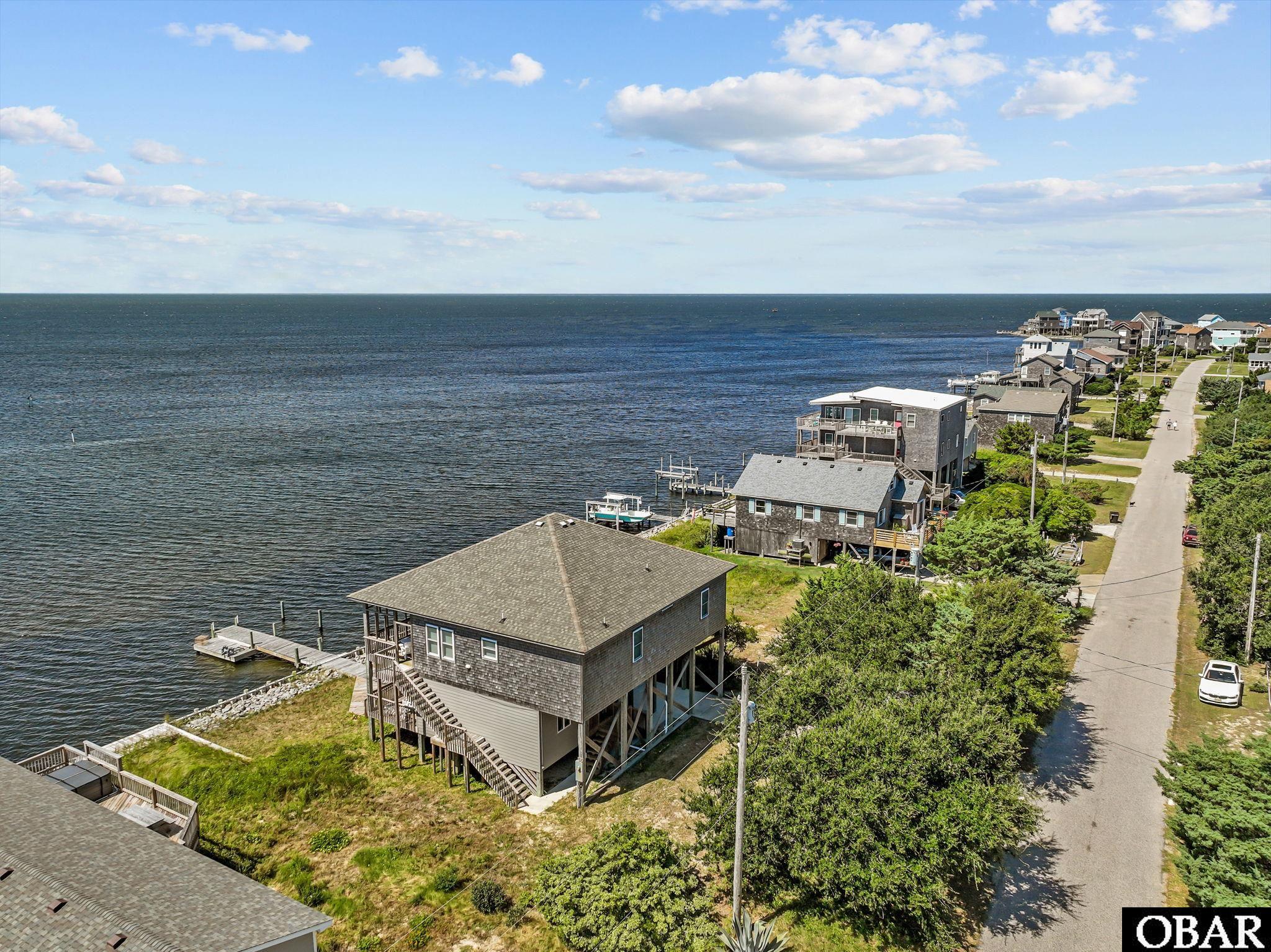 Spectacular, breathtaking sunset water views! Entertaining water activity, including boaters cruising by, kite boarders whipping around, bright colored windsurfers, kayakers, jumping mullet, stingrays patrolling the bulkhead, the many pelicans, ospreys, terns, and cormorants poised to dive from the channel markers for their next meal. Bring your own boat for easy access to the sound / ocean from your back yard dock. Enjoy the fishing and crabbing from your own pier, kayaking, or paddle-boarding to the beach located to the immediate south of the cottage. This beach home has been meticulously maintained. Open layout with numerous windows and large, covered deck spaces featuring a screened porch. Bulkheaded vinyl with heavy rip-rap to minimize erosion. Spacious bedrooms. Very comfy furniture throughout for relaxing and rejuvenating. The bonus room below features a king-sized bed, full bath, sitting area, storage closet for your water toys, fishing and beach gear, and its own private covered deck. There are lots of nearby canals to explore by kayak or paddleboard. Tall attic for additional storage. Frisco bath house beach access is just a short drive with lots of parking and a great boardwalk to transport your beach gear with ease.