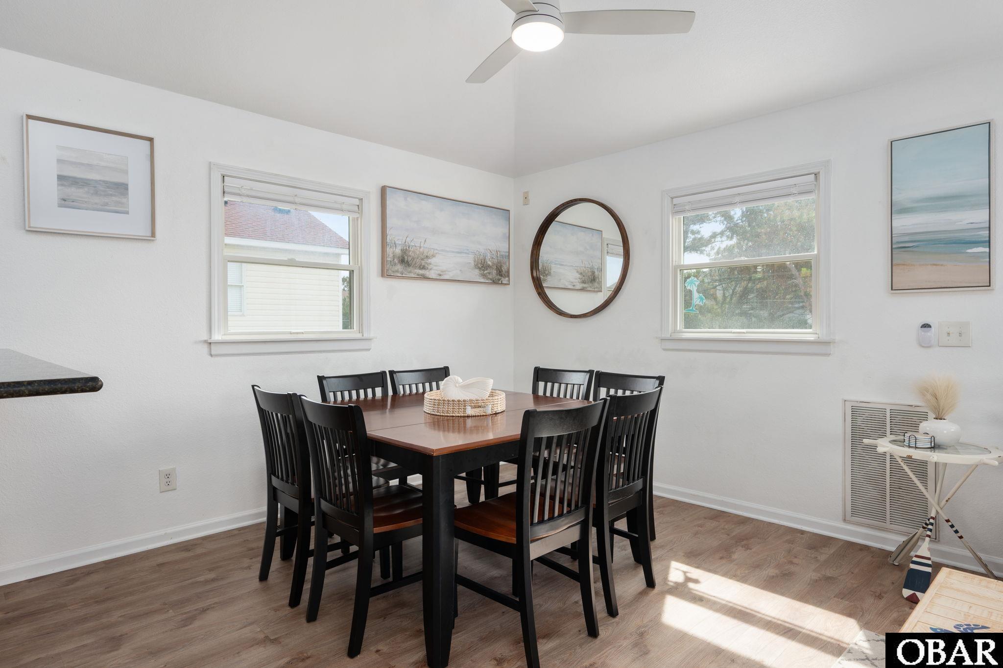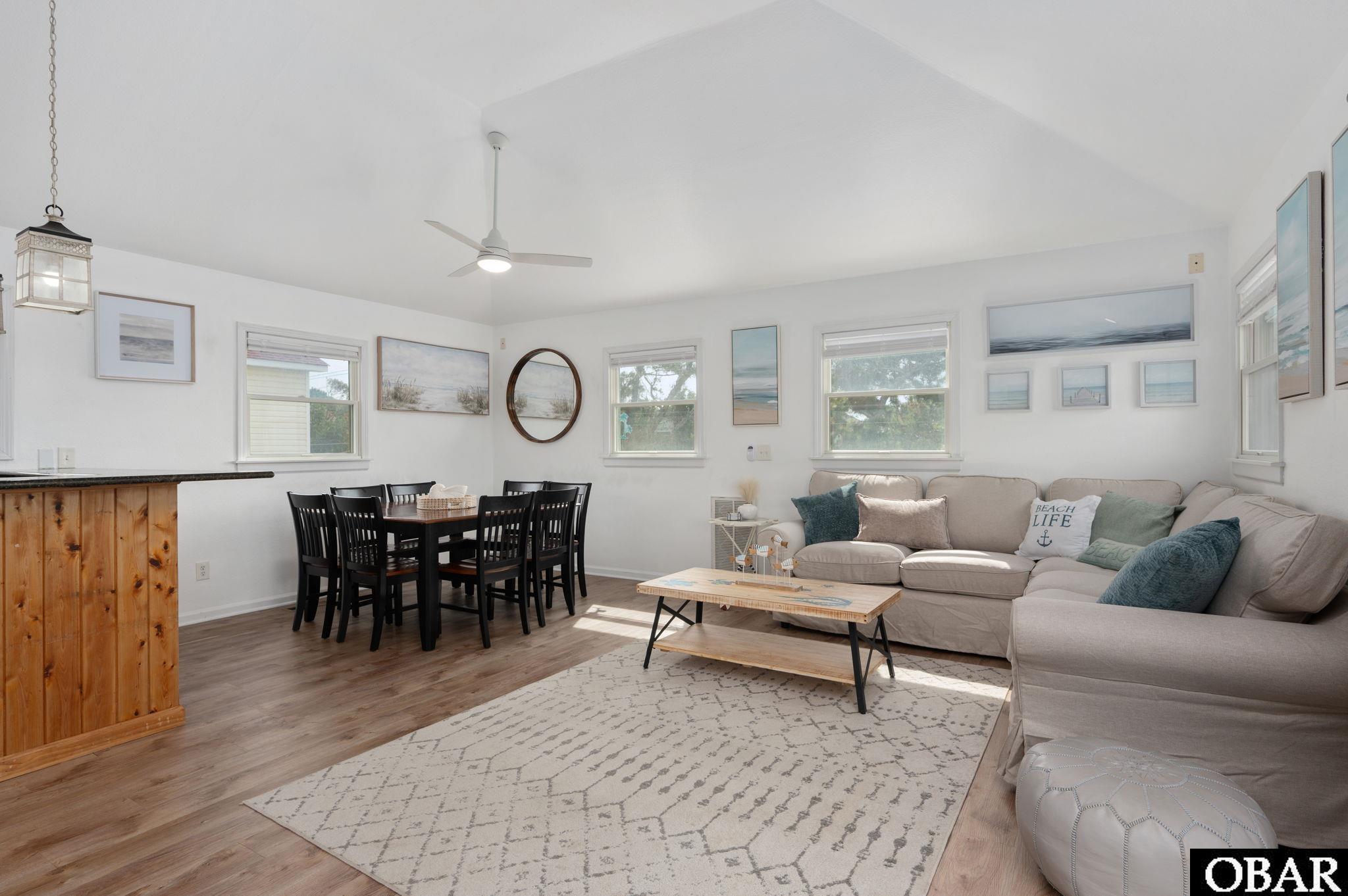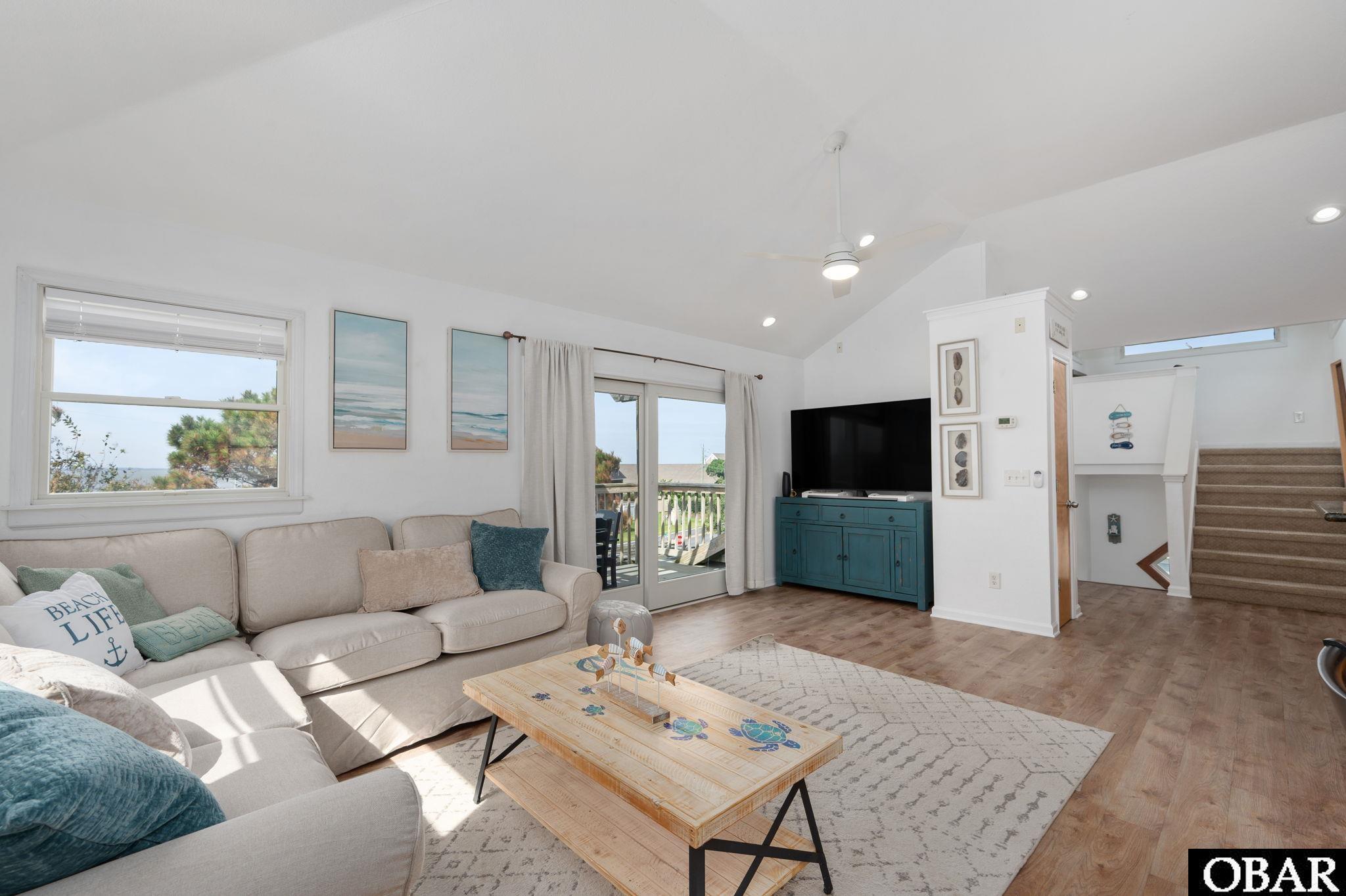 Love Duck, who doesn't? Well, this is an attractive, updated, & great condition coastal home opportunity within the iconic Town of Duck, NC, offering 4 bedrooms (2 En-suites), 3 full & 2 half baths, great sound & sunset VIEWS, nice private saltwater pool and deck area, deeded community beach access right down the street, and fully furnished and accessorized with modern coastal furnishings & decor. This home is truly crisp and clean, with updated high quality finishes, and ready for immediate enjoyment and/or lucrative rental income! Compare / tour some other properties and the condition will show. The floorplan provides an open bright great room with high ceilings, Sound / Water views from inside and the decking, ship's watch, 2 en-suite bedrooms, 2 other bedrooms each with a private half bath, and a shared shower....and is arranged to be able to separate the two rear bedrooms with a separate entrance, for multiple use / rental options; if desired. Good 2025 rental bookings and guest enjoyment in it's first rental year, with room to grow. Significant 2024-25 updates include the refurnishing & redecorating of the home, with new attractive coastal decor, new granite kitchen counters / sink / faucet, bathrooms updated with new vanities, flooring, fixtures, and much more....even including the installation of an EV charging station! Located in the quaint community of Sound-Sea Village, a golf cart friendly community, with a neighborly feel, beach access directly Eastward, just a 5 minute walk, .3 miles, past 14 homes, plus designated golf cart parking at beach, and sound access. The ground floor provides 2 driveways with deep carports & dry entry, ample parking, large 8' x 12' exterior storage room, sunny pool and pool patio area, really cool outside shower room with lavatory, and mature established landscaping / grounds. Design offers great flexible use & multiple use & income sources, for now or the future. Time the sunset and be there! Offered fully furnished, including modern deck & pool furniture, 5 TV's, including 65" Samsung, this well cared for home is really ready to spend the night. Duck is happening, and this property is just 2 miles from the Town and all it offers, via detached bike path. No popcorn ceiling, no polybutylene plumbing. This home will be a pleasure to show and own! New 2025 Dare County Tax Valuation of $859,300.