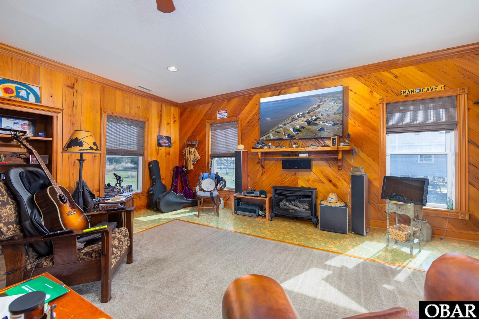 Welcome to a breathtaking retreat on the serene shores of Stumpy Point Bay, where majestic beauty and exquisite craftsmanship converge. This high-end luxury sound front property boasts unparalleled views and meticulously designed spaces that redefine waterfront living. A stunning Komoro wood-covered porch—crafted from one of the world’s most durable exotic hardwoods—sets the stage for this architectural marvel. The grand African teak and stained-glass entry door is both impressive and inviting, hinting at the opulence within. A circular paved driveway ensures effortless access. Step inside to an expansive open foyer adorned with wide trim moldings, a recurring motif throughout the home. Beyond lies a living room with soaring vaulted ceilings, a custom curly cherry wood entertainment center, and a gas fireplace that radiates warmth. Floor-to-ceiling Anderson tilt windows frame breathtaking views, while Brazilian cherry hardwood floors add a touch of timeless elegance. A gourmet Kitchen, the heart of the home, is a chef’s dream. Highlights include rare curly cherry wood cabinets, center island with inlaid curly maple countertops, double ovens and a gas cooktop range, elevated ceilings and accent lighting with clear views of the living room. The attached screened porch, which overlooks an expansive back yard, is bordered by a deep water canal. The breakfast room provides views through the screened porch and beyond to the canal with a long canal side boat dock. Also on the first living level is a dining room just off the kitchen which has Brazilian Cherry Hardwood floors, stunning sound views and ample room for a large dining table. There are two bedrooms on this first level one of which is a mammoth sized primary which includes everything you could possibly want. A jetted tub, a separate full sized shower, double sink, walk-in double closets. Double doors lead to the screened porch which is away from the rest of the house for privacy. Just off the kitchen separate wing! A spacious bedroom and bath and a gigantic second living room with impressive Pecky Wood walls, unique cork flooring and a separate access to the outside. You will be delighted to enter this expansive 22' x 27' section of the home, where a dedicated stairwell allows access 14’ x 27’ space which would is perfect for a home office or bunk room. Take the main stairwell (also made out of Brazilian Cherry) or Elevator to the top living area where you will find two unusually large bedrooms, and a full bath. Both with large closets and water views. This unique property is perfect for generation living, a family retreat or year round residence or an Airbnb.