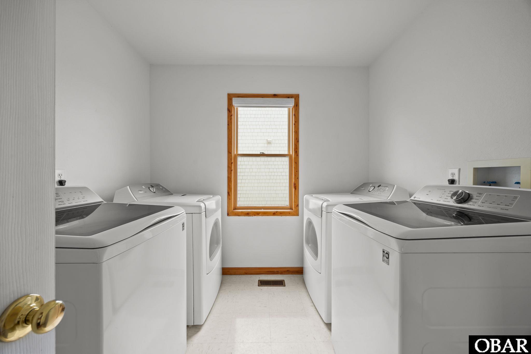 Inside, there’s no shortage of spaces to gather. The media room offers a true theater experience with a large plasma TV and reclining seats, while the rec room comes complete with a pool table, wet bar, and easy access to everything you need for a fun evening in. The well-equipped kitchen includes an oversized refrigerator and two dishwashers, making it easy to cook and entertain for a crowd. Another stand out feature is the two washers, two dryers, and two 80 gallon water heaters. The outdoor amenities are just as impressive, with a grill area, an outdoor shower, and direct access to the beach just steps away.