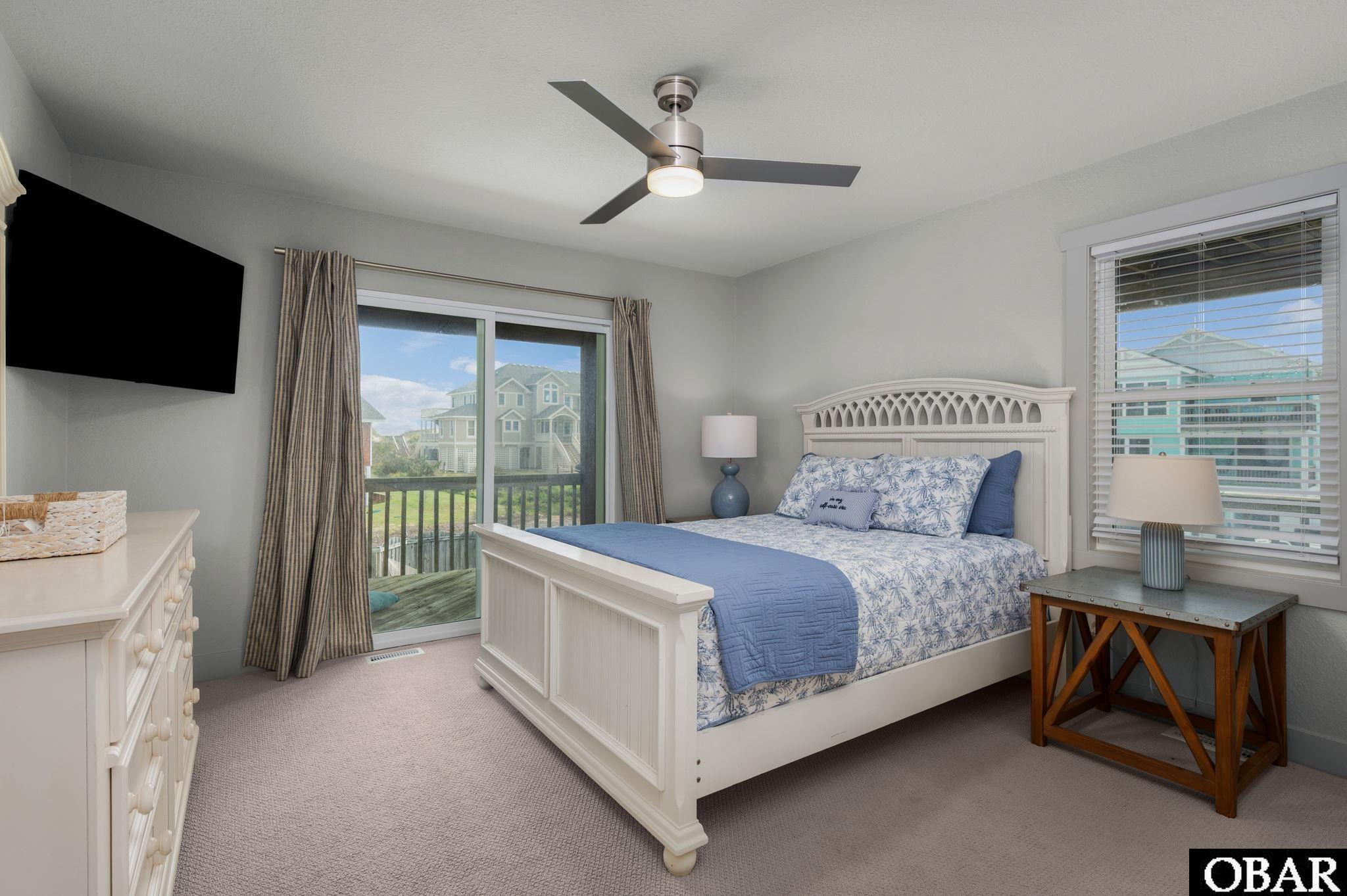 On the mid-level, you'll find two queen bedrooms with deck access, a classic OBX bunk room with two sets of bunk beds sure to please the littles, and two full baths, all recently updated. A cozy hallway nook serves as a quaint second den, perfect for game nights or movie marathons.
