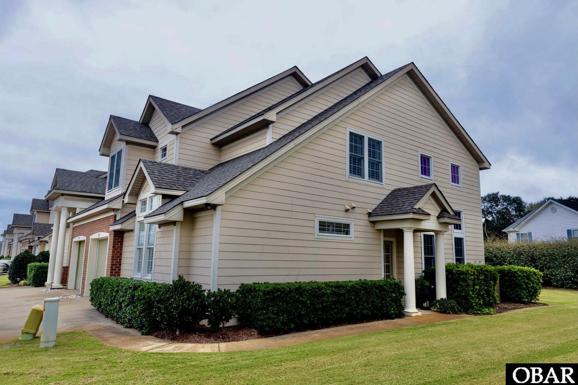 Welcome to 122 Gables, a beautifully updated townhome in the highly desirable Gables community of Kitty Hawk. This low-maintenance, spacious 1,756 sq. ft. single-family condo offers the perfect blend of comfort, style, and location. Nestled on the Westside in a serene subdivision just over the bridge near milepost 3.5, it’s close to the beach, top-tier shopping, and fantastic restaurants—yet tucked away from the main road for added privacy and tranquility. Inside, the home features luxury vinyl plank flooring throughout, hardwood stairs, a new water heater (installed 9/2025), and an open, airy floor plan bathed in natural light from large windows. The Great Room boasts vaulted ceilings, a cozy sitting area, plantation shutters, and sliding glass doors that open to a peaceful private patio. Unlike many units, this home backs up to a privacy fence and natural green space—offering a quiet, secluded setting with no neighboring condos or roads directly behind. The dining area is ideal for entertaining, and the roomy kitchen includes custom Silestone countertops with an eat-on bar for four. A conveniently located powder bath on the main level adds functionality for guests. With three bedrooms and 3.5 bathrooms, the layout includes ensuite bedrooms both upstairs and downstairs, plus an additional bedroom with its own private bath—perfect for family or guests. The first-floor primary suite is ADA-compliant, featuring wider doorways, grab bars, and entry through the garage, providing accessible and comfortable living without compromising style. The home also offers exceptional storage throughout, including generous closet space, built-ins, and garage storage options. The one-car garage includes a dry entry and an automatic opener for secure access. Outside, enjoy the beautifully maintained lawn, a community pool within walking distance, and a backyard that offers both privacy and a connection to nature. Recent updates include a new roof (2024). Don’t miss the opportunity to own in one of Kitty Hawk’s most charming and well-located communities—122 Gables offers low-maintenance living, thoughtful upgrades, and exceptional value in a prime Outer Banks location.