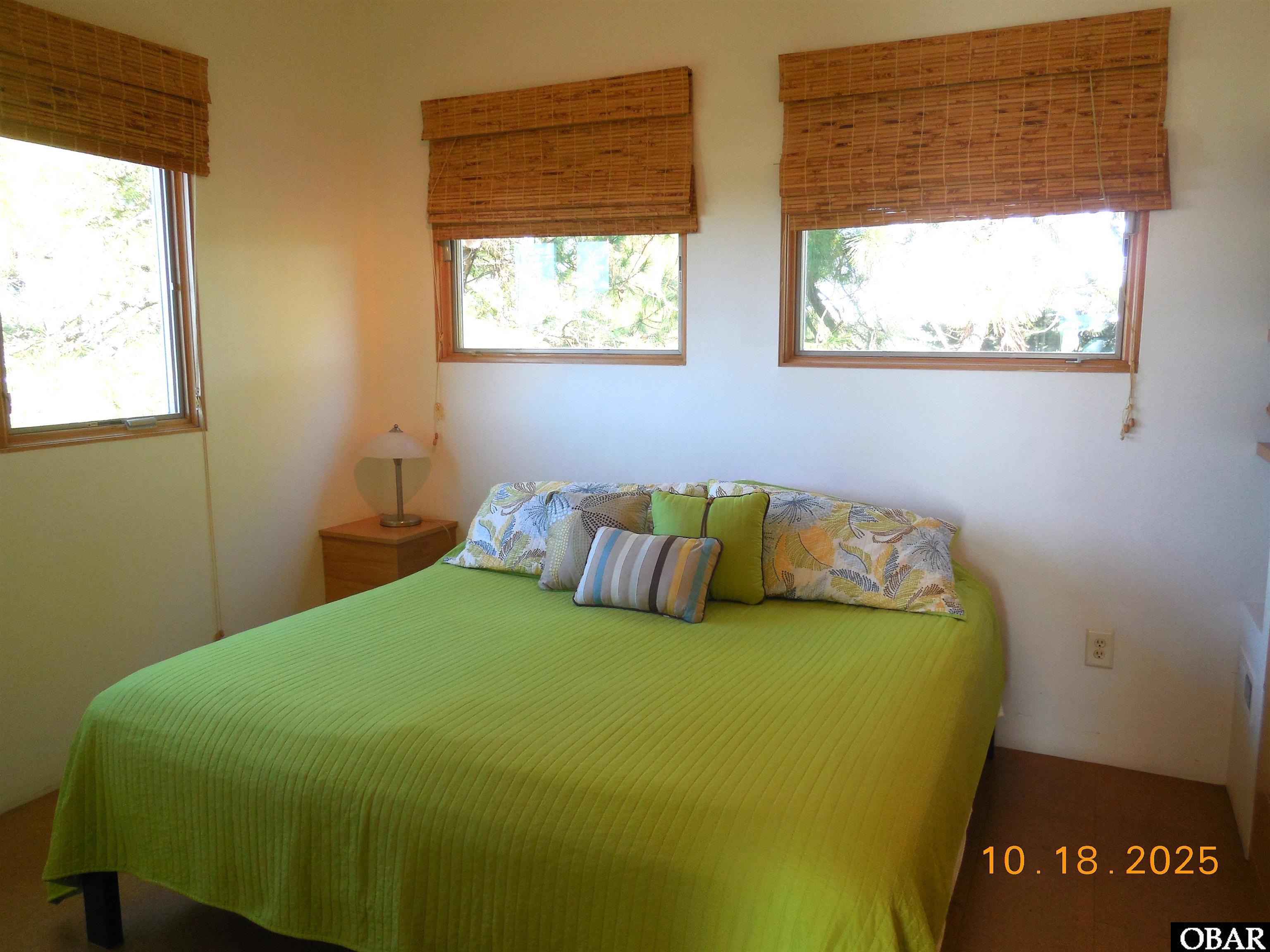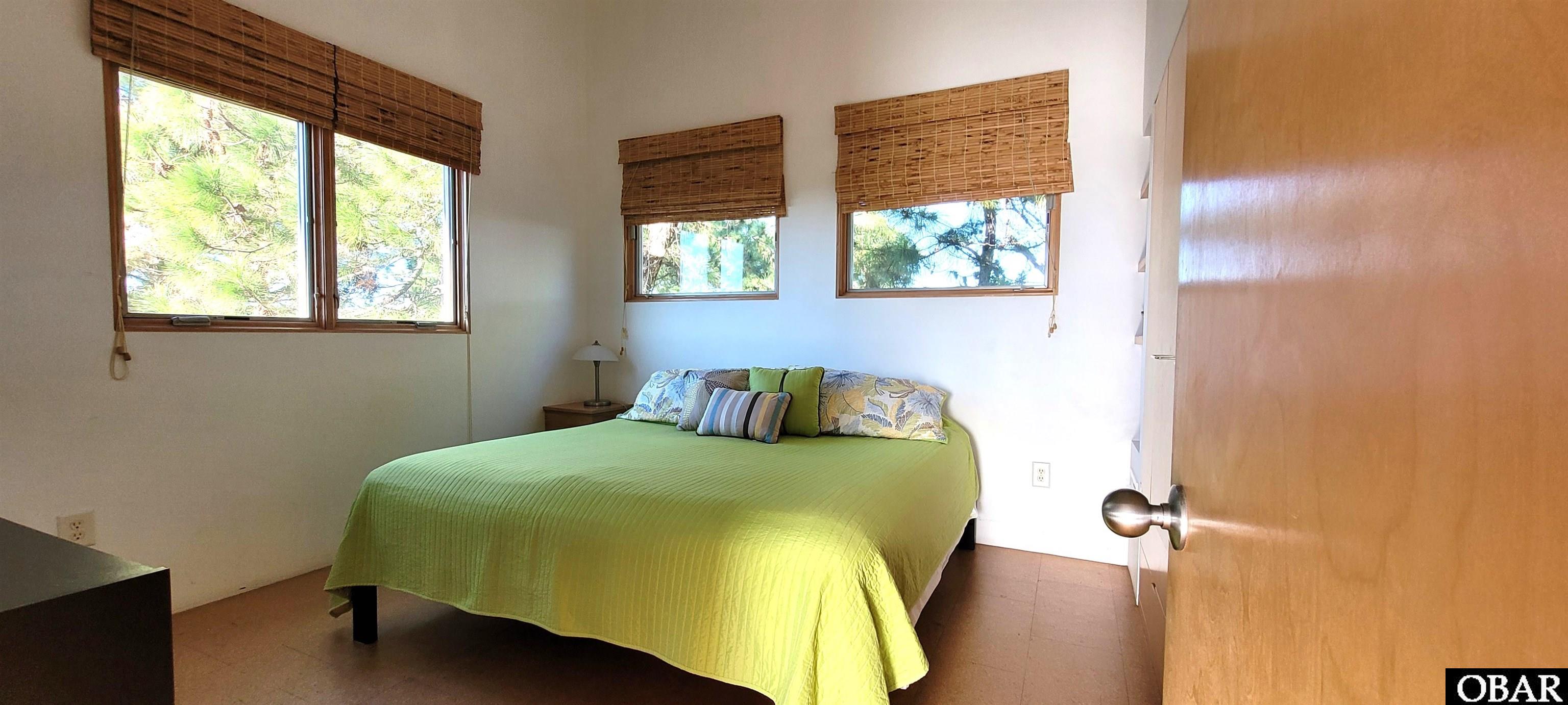 A 4 bedroom/3.5 bath home built in 2005; a coastal contemporary beauty! Built and designed by two of Ocracoke's finest craftspeople/artisans. From window and door size and placement to building the home among the tall pines to enjoy the summer breeze and privacy, it would be hard to find a home that takes better advantage of the island's natural beauty! This custom home has many different possibilities for various floor plans. A 4 bedroom home or a 3 bedroom home with a one bedroom/1 bath first level "in-law studio" or use the current temperature controlled storage area together with the studio for a full "in-law" apartment. Another option is to keep one area locked off for owner use and rent the other space as a vacation rental. Currently, the first level consists of a 20' x 16' storage area/work space and a studio apartment. The studio has an efficiency style kitchen and attached bath with a shower. The studio is large enough for a sleeping space and a living area. If there is no one using the first level, both the storage area and studio are conveniently heated and cooled by P-Tac units for separate climate control from the main home. Swing your day away on the large covered deck that extends the entire length of the home. The deck can be accessed by both the storage area and the studio. The second level is perfect for entertaining with its spacious open living/dining/kitchen area with attached furnished grand screened porch. On those beautiful Ocracoke evenings, bring the outside in, when you open the (3) 6' wide French doors to the screened porch! The custom kitchen has birch wood cabinets, gas cook stove and granite countertops. The living area has cathedral ceilings, birch walls, unique window design to bring in the natural light, creative lighting, a wall that can transform into a climbing rock wall (if desired) and cork flooring throughout. There is also a half bath and a laundry/utility room with a locked storage closet, W/D, shelving and office area. The third level consists of 3 bedrooms and 2 baths. The primary bedroom has high ceilings, ceiling fan, built-in custom closet with shelving and drawers and an attached bath with a beautiful hand troweled concrete shower with a skylight above and a tiled floor. The remaining 2 bedrooms each have built-in shelving, a birch wood wall panel that has an option to open to view the living area below, cork floors and high ceilings. One bedroom has a custom industrial ladder attached to the wall to access an additional sleeping loft/reading nook. A hallway bath has tiled floors, tiled tub/shower surround and a skylight above the tub. Updates include: central heat /ac (HVAC new in 2021), newly painted exterior in 2024, a new roof in 2022 and a new hot water heater in 2024. Currently being used as a primary home; however, it has been a vacation rental in the past with an impressive rental history.