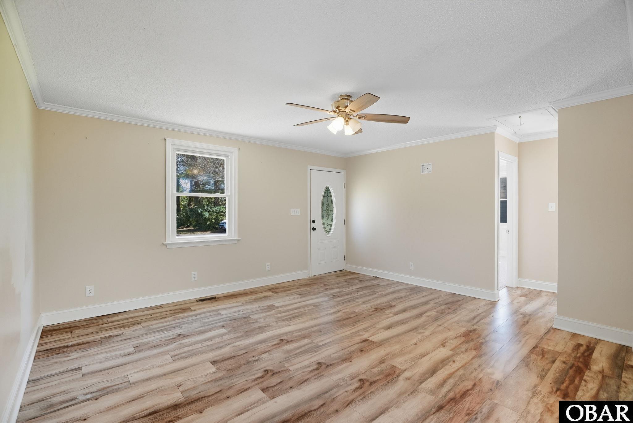 Welcome home to this charming 3-bedroom, 1-bath single-family home featuring an inviting open floor plan and thoughtful modern touches throughout! With approximately 957 sq ft of living space on an approx. 0.23-acre lot, this home perfectly balances comfort and functionality. Step inside to find freshly painted bedrooms and new carpet in two of the bedrooms (2025), creating a warm and welcoming atmosphere. The updated bathroom features modern tile work in the shower, while the LVP flooring flows seamlessly through the main living areas, adding durability and style. The kitchen includes a brand-new refrigerator (2025) and plenty of cabinet space, opening to a bright and airy living area — perfect for entertaining or relaxing at home. Major system updates include a new HVAC system and ductwork (Sept. 2024) and updated electrical wiring (2023), giving you peace of mind for years to come. A new vapor barrier in the crawl space (2025) further enhances this home's efficiency and care. Outside, you'll enjoy a fully fenced backyard with a storage shed, extra storage space, and even a basketball post and concrete slab — great for recreation or hobbies. The neighborhood is located within minutes from historic downtown Edenton, shops, and schools plus has city trash pick-up! This move-in-ready home offers the perfect blend of charm, updates, and convenience! This home is ready for its new owners! Schedule your showing today and make an offer!