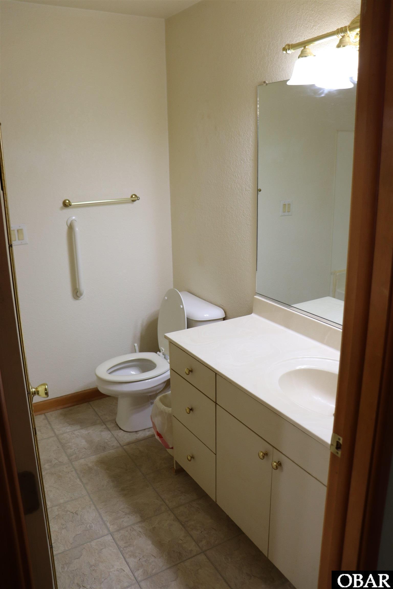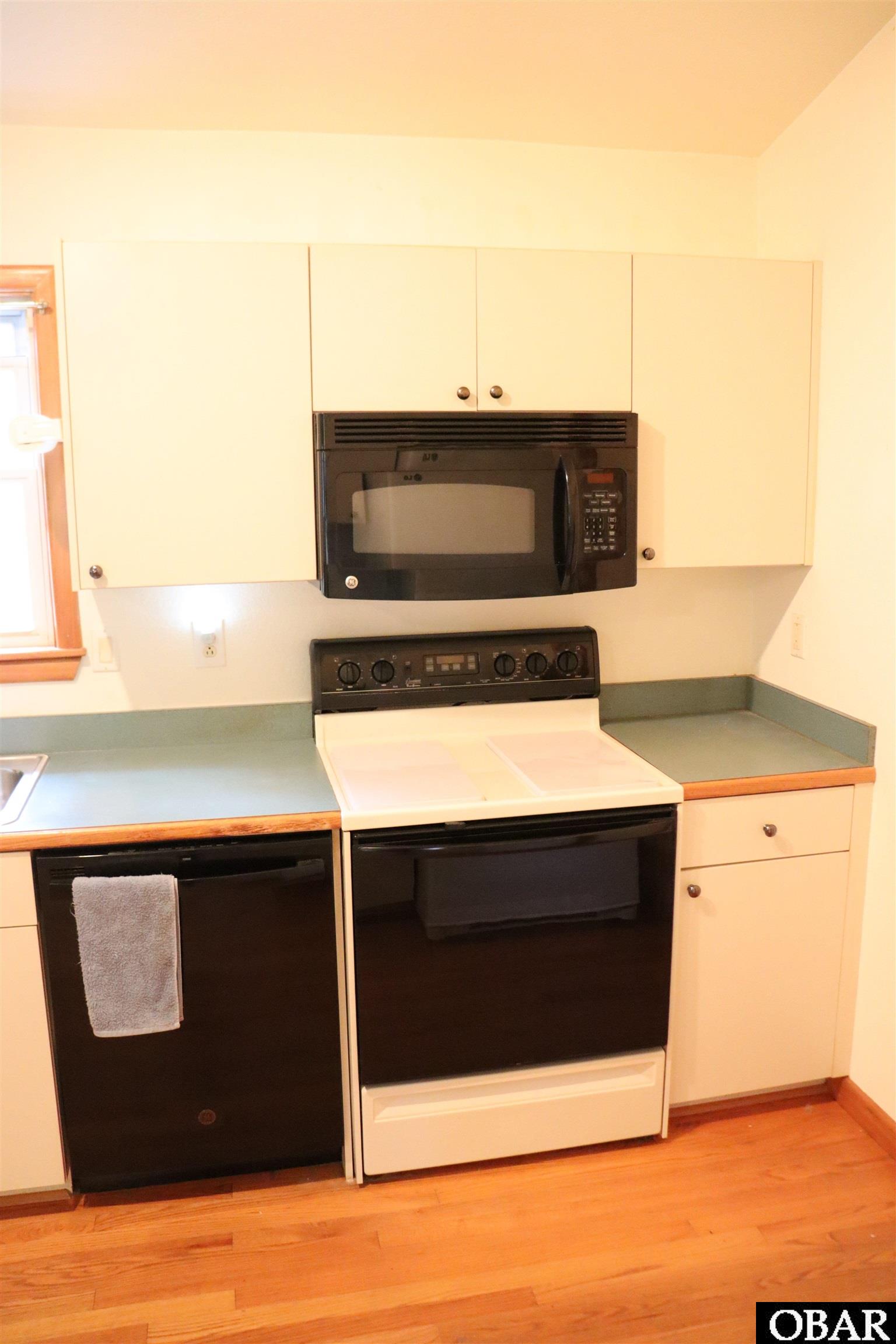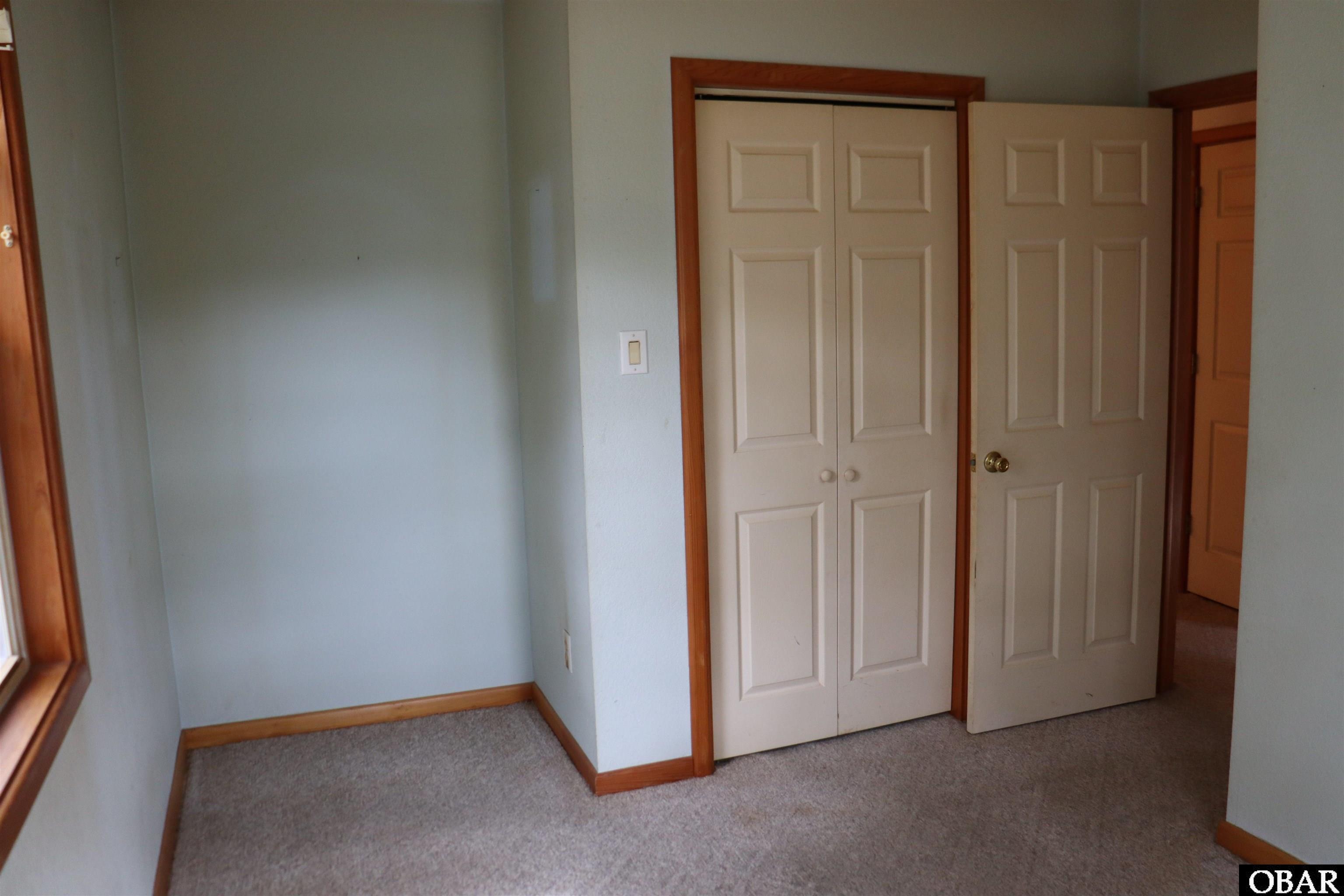 This charming home is located in historic Kitty Hawk Village on Elijah Baum Road, named after the old postmaster who was the first person to welcome Wilbur Wright to Kitty Hawk. The street is peppered with live oak trees and feels like your out in the country . . . but in reality you're just about a mile from the ocean. The home is situated on a large (approx. 36,000 SF), wooded creekfront lot with a circular driveway and covered carport. It features an open floorplan with the kitchen overlooking the dining and living rooms. The living area has a cathedral ceiling, a wood burning fire place and lots of natural light. Flanking the living area are two bedrooms and a full bath on the south wing, and the primary bedroom with ensuite bath and a walk in closet on the north wing. The flooring consists of hardwood in the kitchen and dining areas and carpet throughout the living room, hallways and bedrooms (which needs replacing). This home was built for year-round residents and offers lots of closets and an attic for storage, as well as a shed in the back yard. The current Land Use Description is "Elderly & Disabled - Part Exempt and the house offers a handicap ramp from the carport to the back porch and one level living. Recent upgrades include a new roof (2025), new Train HVAC condenser (2022), and new septic field (2023).