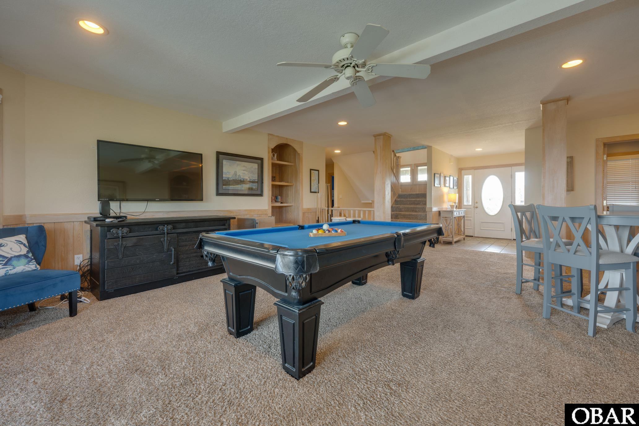 INCREDIBLE OPPORTUNITY! OCEANFRONT! STRONG RENTAL INCOME! EASY ACCESS! PRICED TO SELL! Discover unparalleled oceanfront living on this expansive corner lot in the 4-wheel drive area of Corolla. Designed for both comfort and style, this home features an open-concept layout across two levels, maximizing space and ocean views at every turn. The upper level showcases an inviting living room featuring gorgeous ocean views and flows seamlessly into the dining area. The large upgraded kitchen with stainless steel appliances, a large, primary ensuite and a 1/2 bath complete this level. The spacious middle level offers four generously-sized bedrooms, 3 bathrooms and a game room outfitted with a pool table, large TV, and easy access to the expansive covered and sun decks. Outdoor living is a highlight, with a private swimming pool and hot tub, providing the ideal setting to enjoy the coastal breeze. This home also includes a one-car garage and is situated in the desirable X flood zone. Nestled in Carova Beach, a serene and untamed environment where wild mustangs roam, this location offers a unique opportunity to own a piece of natural beauty. With easy access via Sturgeon Lane and a well-established dune system, the property provides the perfect balance of seclusion and convenience. With a strong rental history this oceanfront gem presents an exceptional investment opportunity.