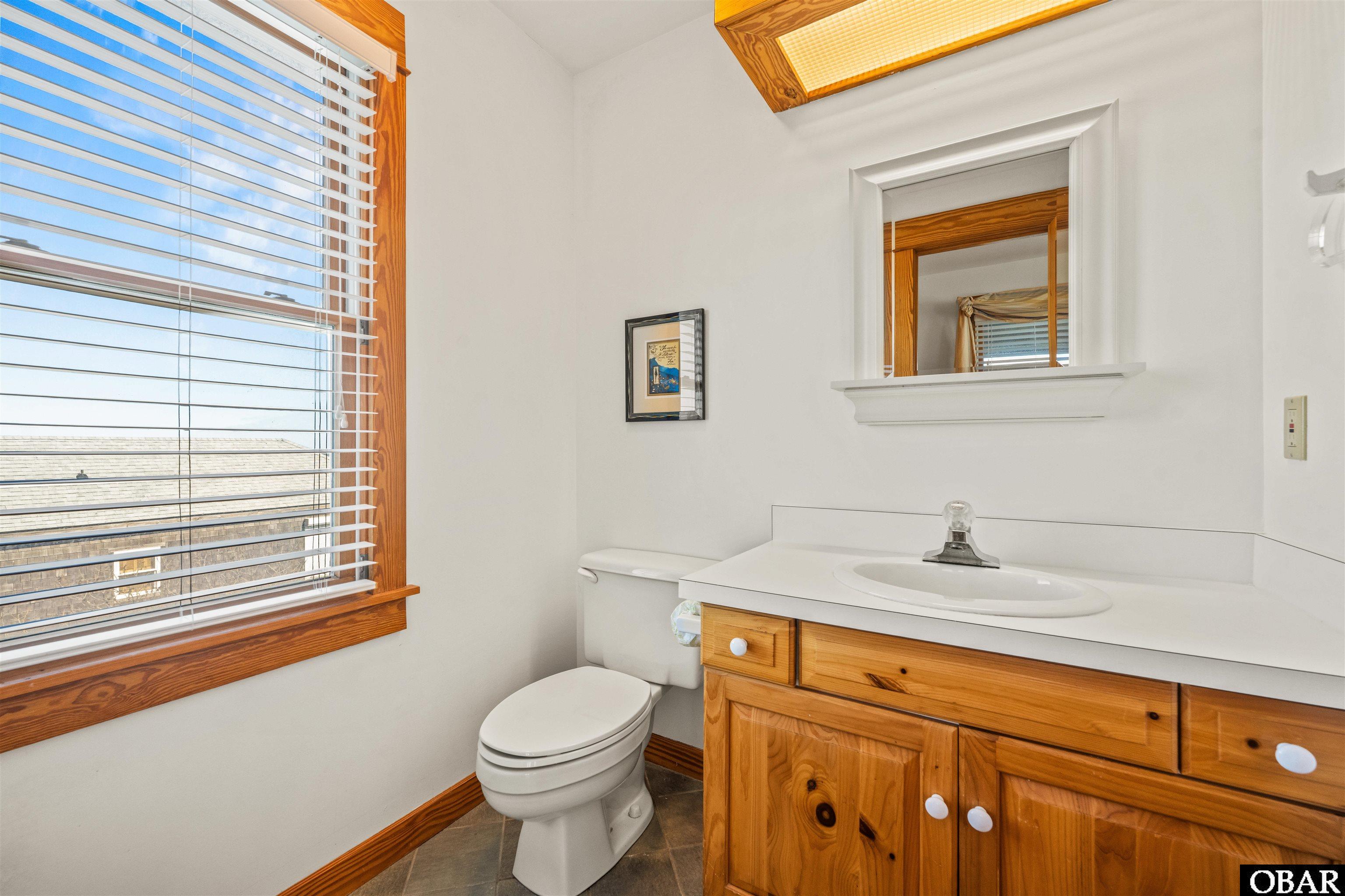 A half bath is conveniently located off the living area, while outdoor decks on both sides of the home will allow you to capture the sunrise over the Atlantic in the morning and sunset over the Currituck Sound in the evening.
