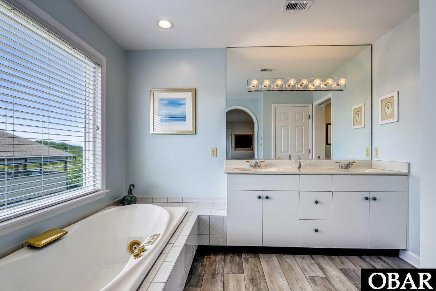 The other two-bedroom suites the KING and a second one with 2-TWIN Beds are on the third level. This is the level you can access the Ships Watch which is set up with a game table and little sofa facing west to views of the Currituck Sound and the fabulous Outer Banks Sunsets.