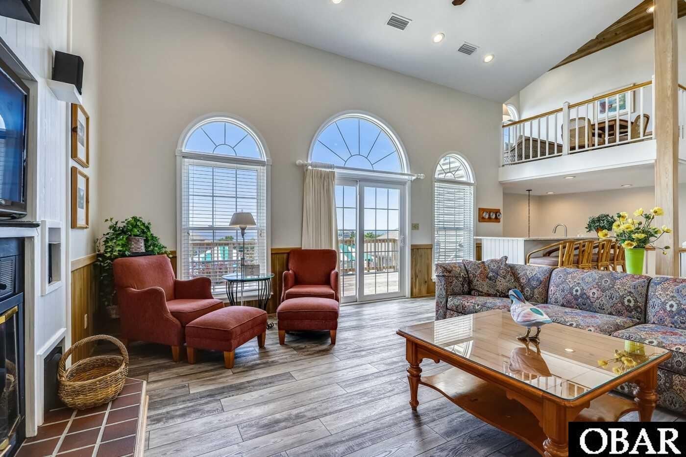 The Main Level has an open great room with Living with Wet Bar, Dining with seating for 8 and Kitchen with L-shaped Peninsula with seating for 6. You also can exit out to the two sun decks separated by a screened-in porch.