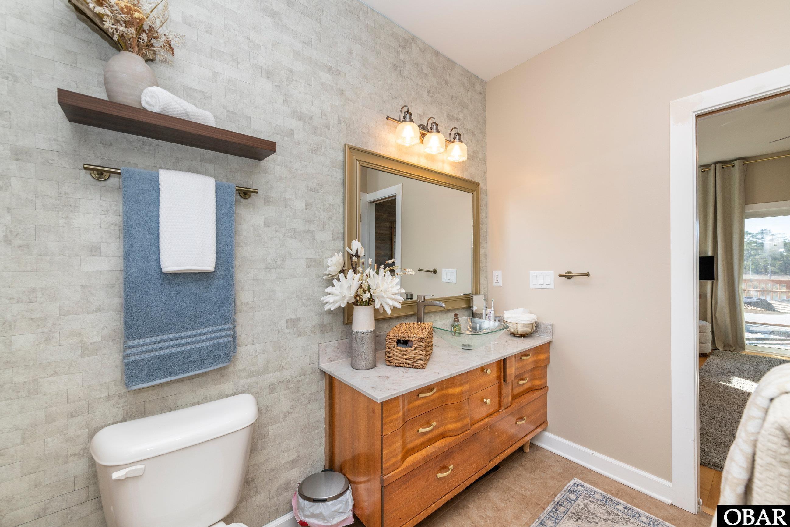 Enjoy beautiful water and marsh views and serene scenery in this custom, pristine waterfront property priced $23,000 below the recent appraised value. The top level of this home features solid maple floors throughout with two en-suite bedrooms with sliding glass doors in both leading to the covered deck and screened-in porch, one with a tiled shower and the other a jetted tub. The living room and kitchen provide panoramic views of the water with many west-facing windows to take in the nightly sunsets and 10' ceilings. The kitchen features Hickory cabinets by Island Woodworkers, new (2025) appliances, tile backsplash, and a large island that comfortably seats four people. Conveniently located in the center of the top floor is a large pantry/laundry room with a wash sink and extra storage. Expansive decks overlooking the preserve, with two covered areas (one a screened-in porch), great for outdoor entertaining. Heading downstairs, you will find an additional 850 sq. ft. of living space including a half bath with endless possibilities. Currently being used as a game room and gym, it would make a great space for a home business or could easily be converted to add an additional bedroom if desired (septic is for 3 bedrooms). Two large carports both provide a dry entry and tall enough to store an RV or boat. Additonal exterior storage available with 12'x14' shed. The exterior features wood composite siding and Azec-polymer decking for low-maintenance living. Navigable canal leading to Kitty Hawk Bay and Albermarle Sound with public boat ramp on the same road.