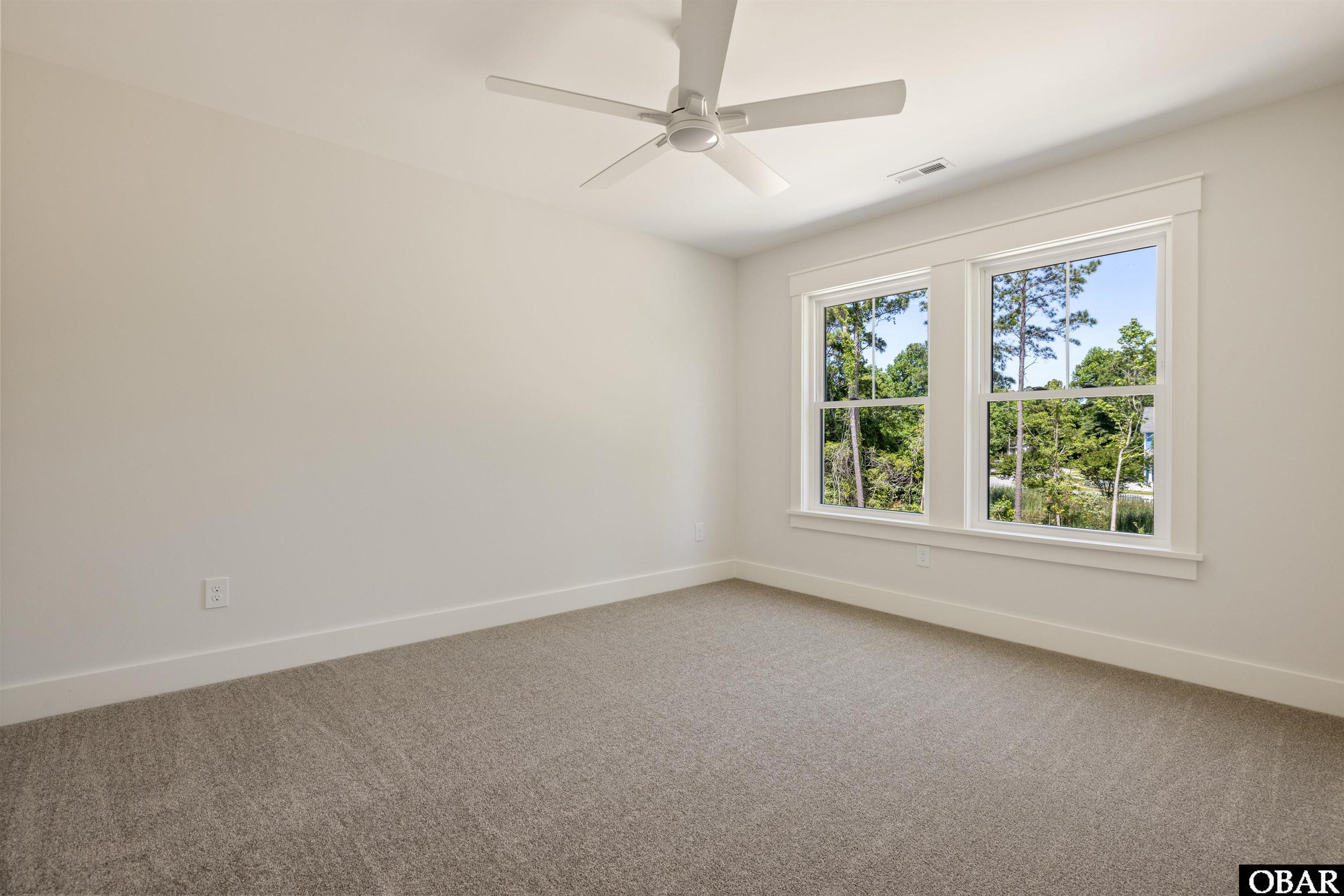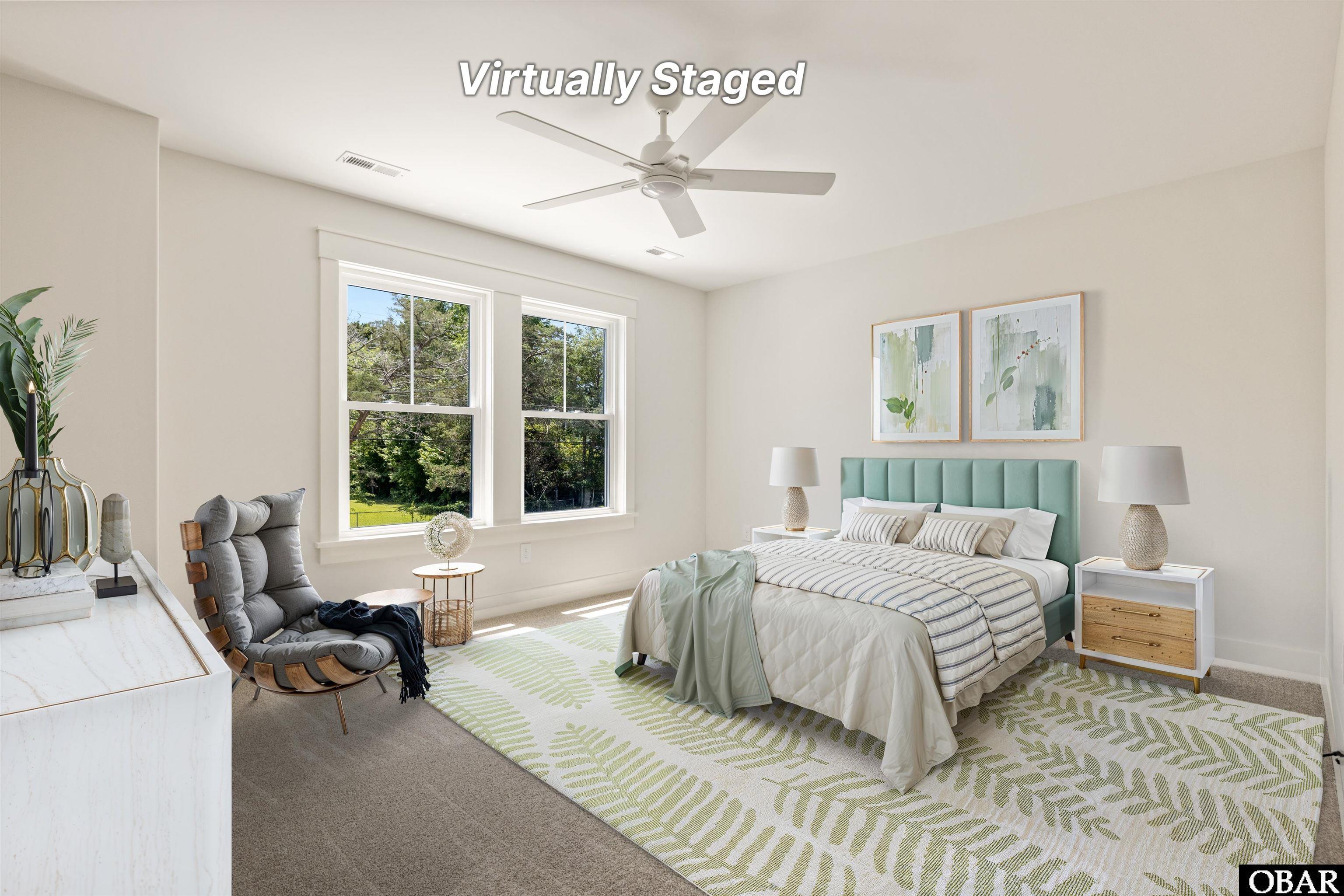 A Barker & Barker Custom Homes new build in a picturesque, historic town–this town home affords the best of both worlds to a homeowner looking for a low maintenance lifestyle in Manteo. With two bedrooms and 1.5 baths, this unit is full of charm and custom touches. You’ll be welcomed into a spacious living room with stylish LVP flooring and board and batten style wainscoting. A powder room tucked away discreetly is perfect when entertaining guests on the home’s main level. An open floor plan leads from the living into the dining space. A back door opens onto a private patio space, perfect for grilling out or dinner outdoors. Adjacent to the dining area is an upscale kitchen with stainless GE appliances and sparkling quartz countertops. You’ll find added character in the kitchen with details like shiplap, pendant lighting, and an elongated subway tile backsplash. There is plenty of storage with ample cabinet space and a double-door pantry. Just off the kitchen, a laundry room with washer, dryer, and a window for natural lighting provides a convenient yet out of sight area for your washing.