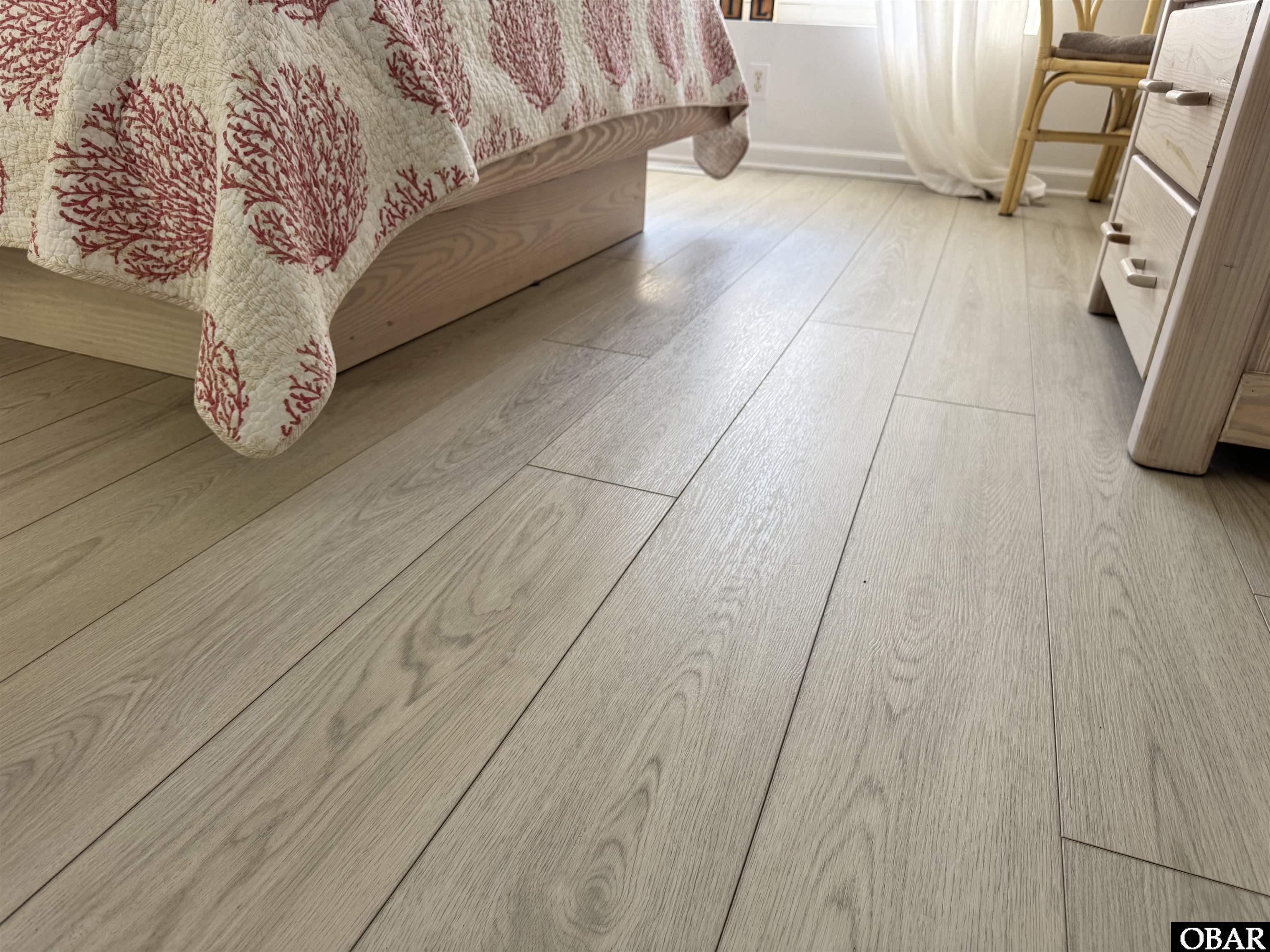 Luxury vinyl tile has been installed throughout providing a handsome and durable flooring that is perfect for the beach.