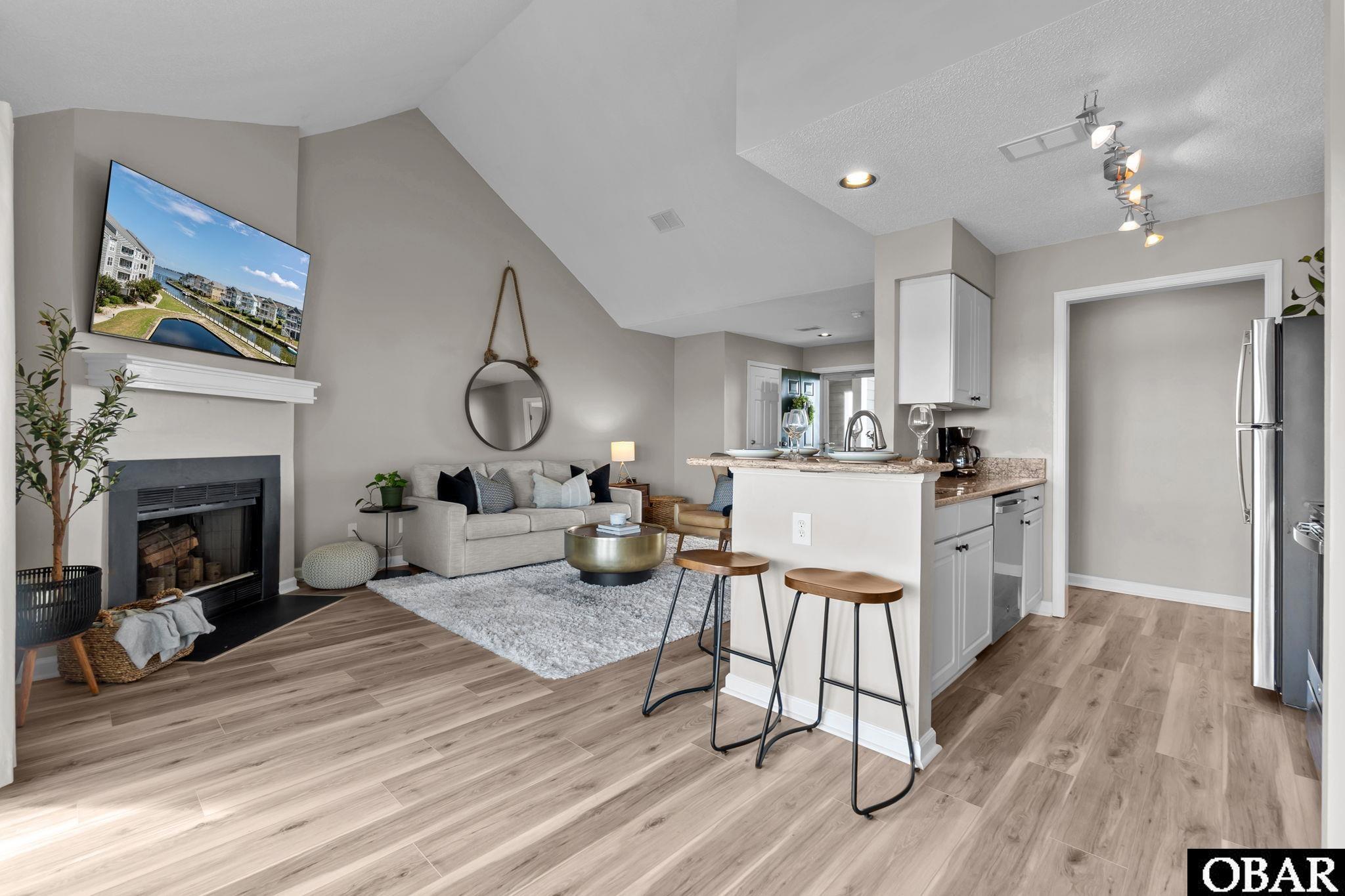 Welcome to 632 Pirates Way — a TURN-KEY RENOVATED CANALFRONT CONDO with RESERVED PARKING and a BOAT SLIP located directly behind the unit. This meticulously maintained home offers everything you’ve been waiting for in a coastal retreat. Expansive double-glass sliding doors and tilt-in windows fill the space with natural light while showcasing stunning SOUND, CANAL & POND views. Step inside to soaring cathedral ceilings, an open floor plan and a bright, welcoming kitchen with an eat-on bar. Relax and entertain on the large deck, where you can enjoy canalfront living at its best with your 25-ft boat slip #44 assigned by the HOA, all while taking in breathtaking direct sound views. Enjoy the convenience of covered RESERVED PARKING, spacious enough for both a vehicle and a golf cart. Inside, you’ll find a generous storage closet, while a second ground-level storage closet is located right next to your reserved parking spot. This immaculate condo is full of thoughtful upgrades: granite countertops in the kitchen and both bathrooms, upgraded stainless appliances from Manteo Furniture and updated flooring throughout. Major improvements include HVAC and water heater replaced in 2019, premium window treatments installed in 2020, windows replaced in 2015, and exterior painting in 2020. SOLD FURNISHED and complete with an attached rental projection, this property is fully turn-key and ready for immediate enjoyment. Experience world-class fishing and water sports just steps away, or take advantage of the many amenities Pirates Cove has to offer.