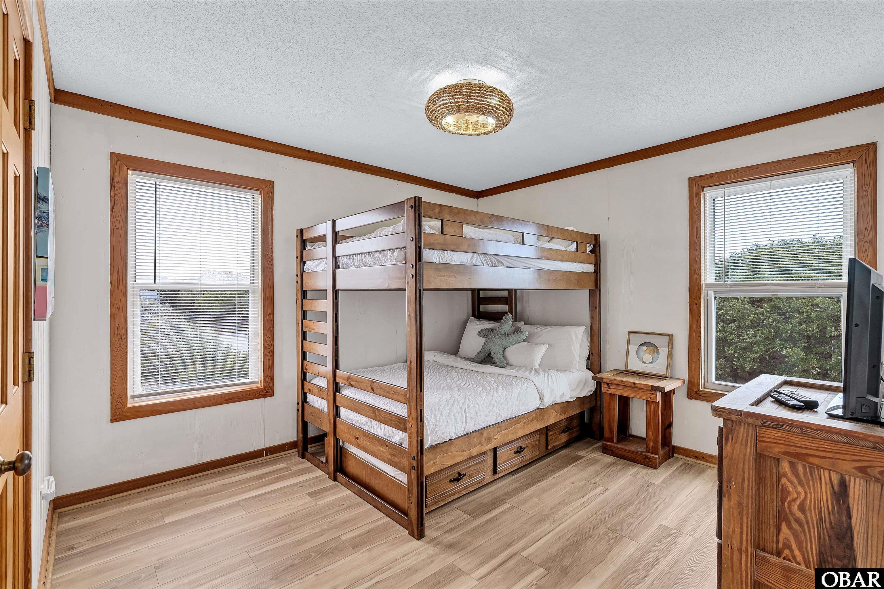 Welcome to this charming 3-bedroom, 2-bath end unit condo just a few minutes walk to the private neighborhood beach access which is one of Corolla's most uncrowded beaches! Nestled on the quieter side of the building further away from the pool, this unit offers added privacy, complemented by a corner location and natural tree buffers. There's even a little view of the ocean dunes and ocean peak from the en-suite bedroom window, inspiring you to start your beach day! Entertain or relax on the spacious covered front porch, perfect for dining or enjoying breathtaking sunsets. This condo was renovated in 2023, showcasing modern upgrades including luxurious vinyl plank flooring, updated plumbing and lighting fixtures, and fresh paint throughout. Additionally, it comes with the peace of mind of an annual HVAC maintenance contract by RA Hoy. Don’t miss out on this exceptional opportunity to own a beautifully updated condo so close to the beach!