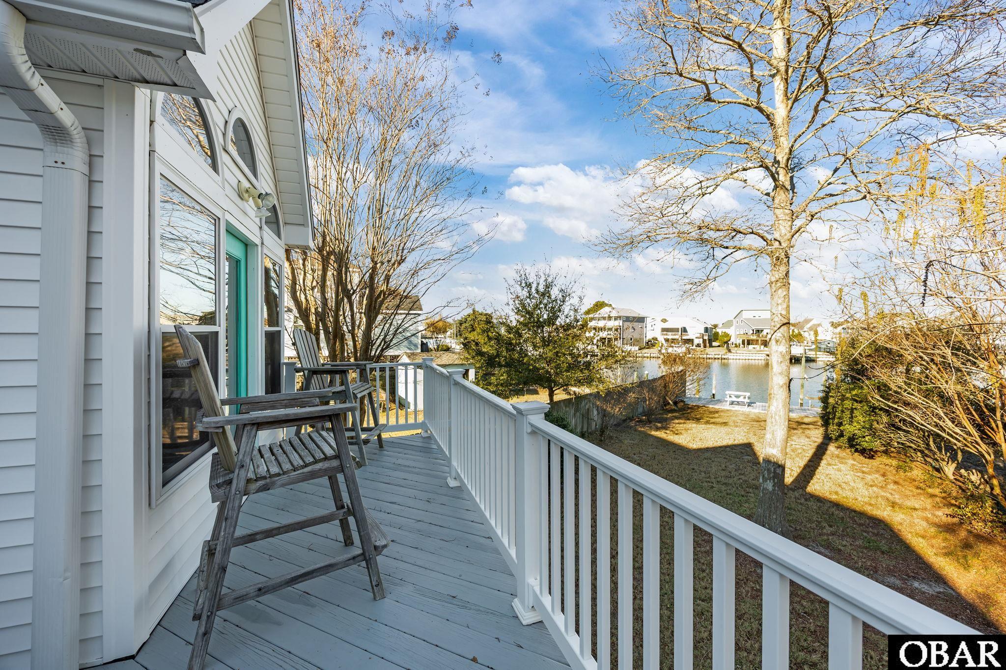 Charming 3BR/2.5BA cape cod with bonus space in the heart of Colington Harbour. Enjoy the best of the Albemarle Sound right from your backyard in this canal-front oasis. A welcoming covered outdoor lounge with new decking sets the stage for relaxing or entertaining, while newer Trex steps provide easy access from the yard to the main living level. Expansive decks provide great water views, along the Frigate canal. The bulkheaded deep backyard space means plenty of room for games, boating, kayaking, fishing, crabbing, picnicking waterside and more. As you enter the ground level you are greeted by an impressive bonus space—perfect as a man cave, game room, or entertainment area—complete with a convenient half bath, custom built-in bar, and plenty of room to gather and watch the big game. Upstairs, the spacious kitchen offers ceramic tile flooring, desirable island, and abundant cabinet space. Sip your morning tea and watch the sunrise from the warm and inviting Florida room highlighted by beautiful hardwood floors, then gather with family and friends in the bright, open living area. Just past the kitchen is the cozy primary bedroom, featuring generous closet space. A renovated full bath with laundry closet complete this level. The top floor features two additional bedrooms and a recently updated full bath. Upgrades include an Ecobee smart thermostat (2025), Trex rear deck steps (2025), dishwasher (2025), and water heater (2023). Residents of Colington Harbour enjoy outstanding community amenities, including a pool, marina, tennis courts, and a sound-front beach known for its stunning sunsets. Come experience the salt life firsthand!