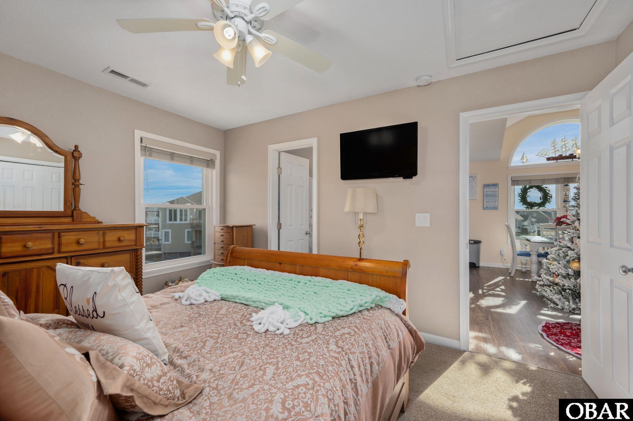 Charming four-bedroom, two-bathroom home nestled within a desirable gated community. This 1,545 square foot residence welcomes you with a dry-entry design through the garage and stunning luxury vinyl plank flooring that flows seamlessly throughout the living spaces. Three bedrooms and one bathroom are located on the mid-level, along with laundry facilities. With this reverse floor plan, the top level boasts an updated kitchen showcasing quartz countertops, new cabinets and updated appliances. The vaulted ceilings create a sense of openness and natural light making the living space feel open and airy. There is also a primary suite on this level and expansive views of the sound and the canal are offered from almost every window and deck. Enjoy the addition of a screened porch, done in 2021, while enjoying the sunsets. For peace of mind, a whole house gas generator ensures uninterrupted comfort during any weather event. The roof was replaced with a fortified roof in 2024 and lightning rods installed for protection against the elements. The gated community offers security while residents enjoy access to fantastic amenities including a community pool (for an additional fee), clubhouse, playground, boat ramp and sound beach access. This location places you minutes from the historic Wright Brothers National Memorial, First Flight schools, nearby Nags Head Woods Preserve and Run Hill State Natural Area, which offer nature enthusiasts hiking opportunities. This property perfectly balances comfortable indoor living with exceptional outdoor amenities, making it an ideal choice for those seeking the Outer Banks lifestyle.