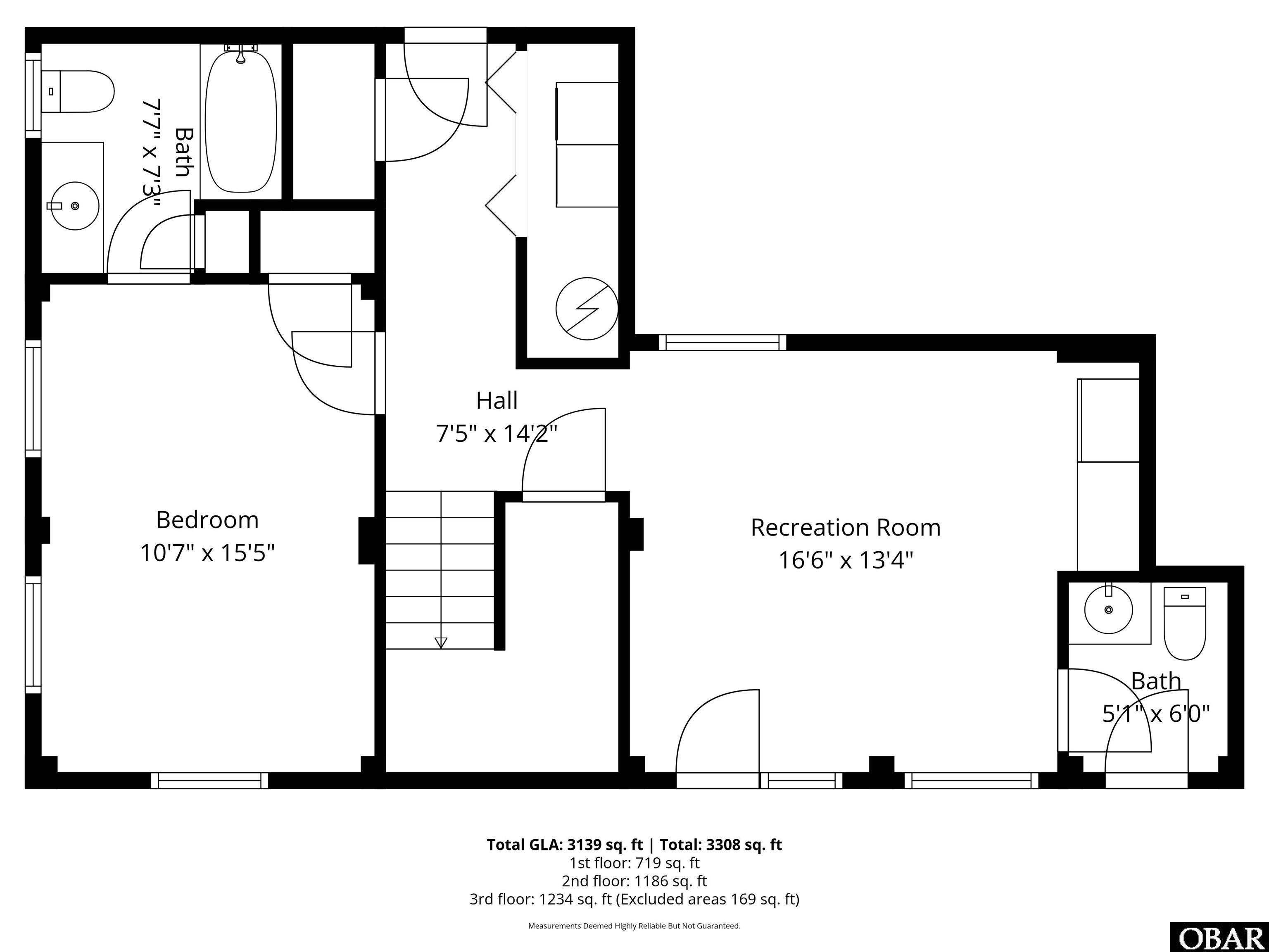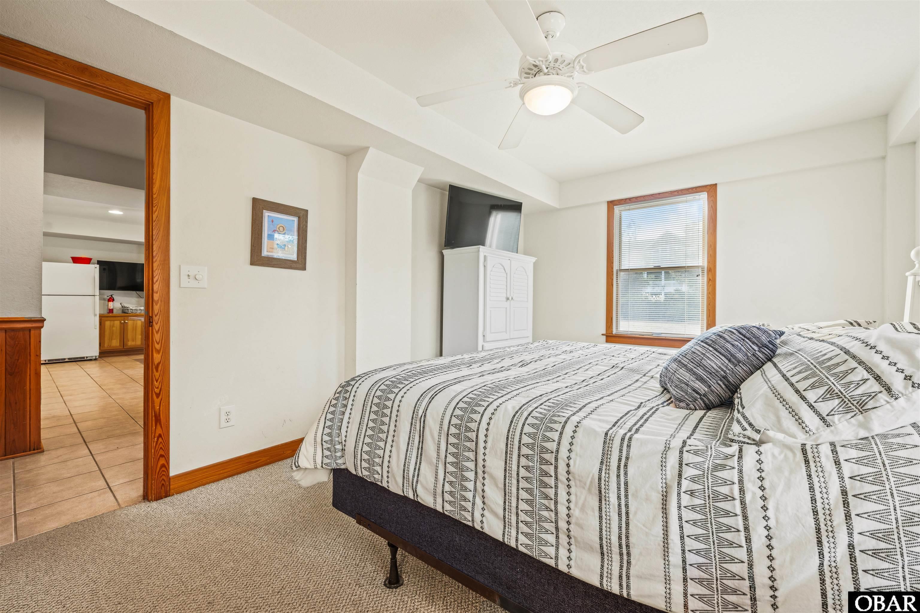 The top level is the heart of the home, featuring a spacious great room filled with natural light and expansive windows that capture ocean views. The open-concept living, dining, and kitchen areas flow seamlessly together—ideal for entertaining or simply relaxing after a day at the beach. A private king ensuite on this level provides a peaceful retreat with added convenience.