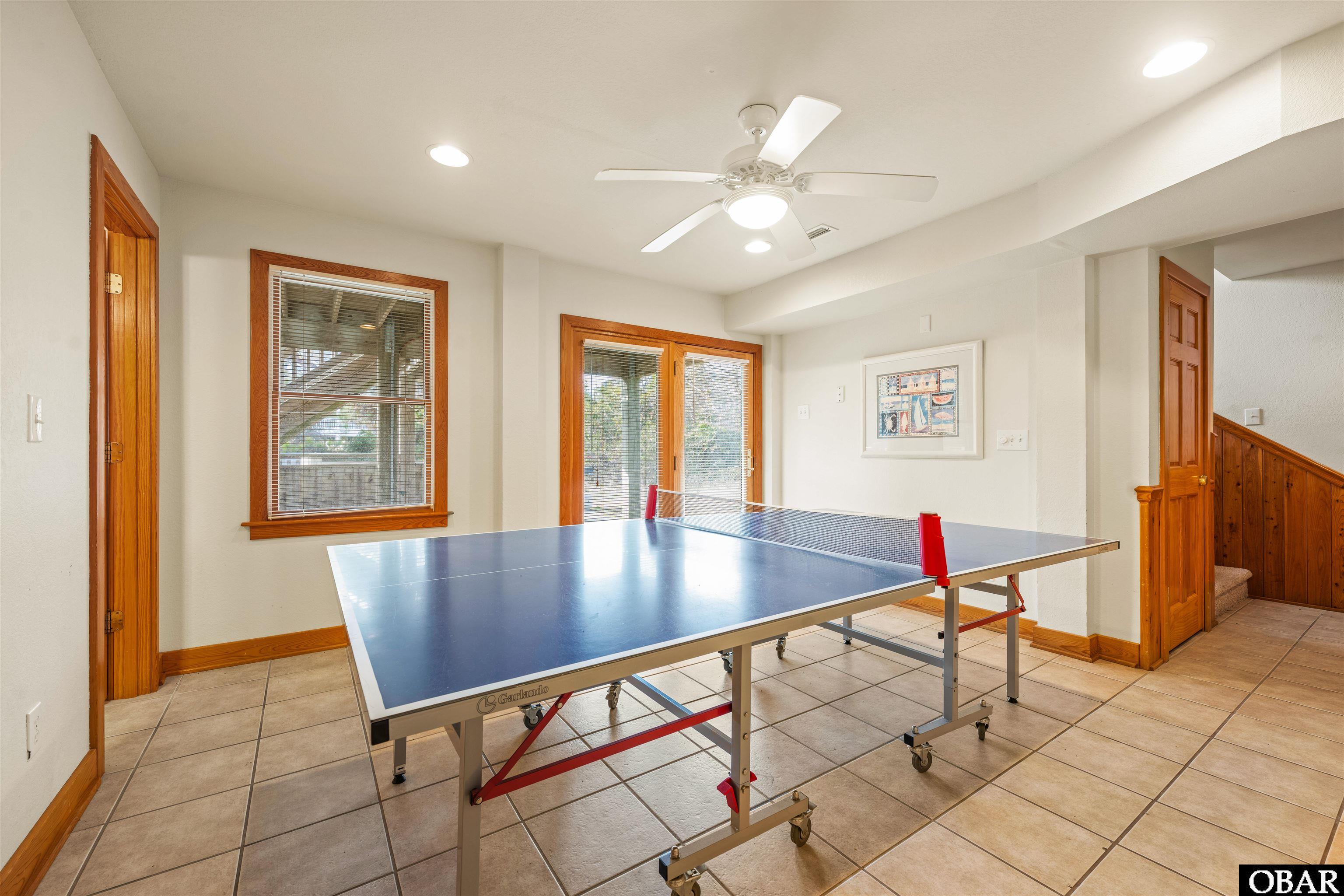The ground level delivers the fun, with a game room, additional bedroom suite, and easy access to the outdoor living spaces. Step outside to your private pool and hot tub, where long summer afternoons and evenings under the stars become cherished traditions. A convenient poolside partial bath and laundry area complete this level, making coastal living effortless.