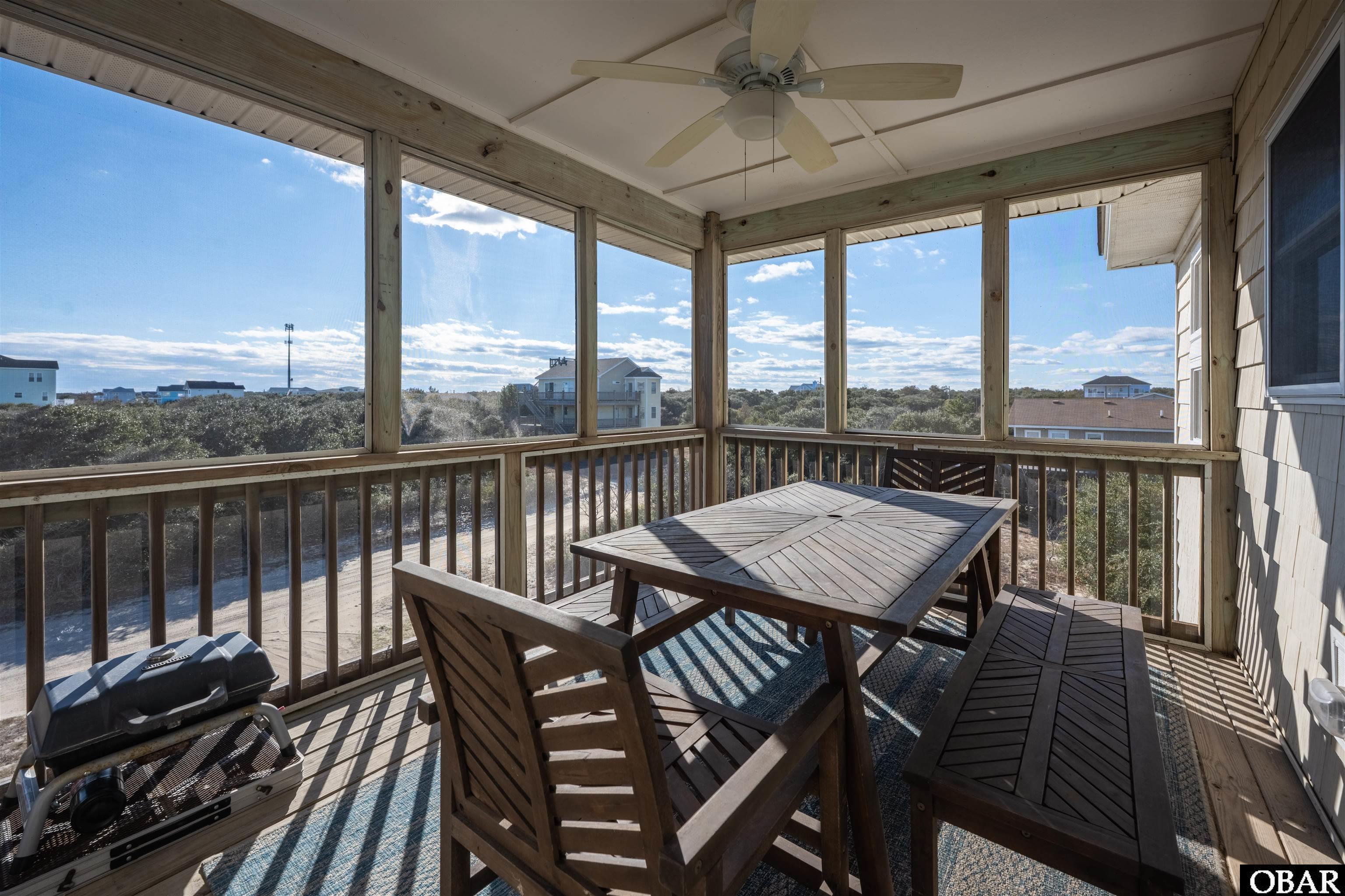 The heart of the home is the open-concept chef’s kitchen, perfectly equipped for large gatherings with a massive granite eat-in island, premium stainless steel appliances, a wine fridge, and a dedicated ice maker. This level also hosts the primary suite, a luxurious oasis featuring a custom-tiled bathroom and private deck access for watching the sunrise. For those who love the outdoors, the top level offers a choice between a breezy, screened-in porch for shaded dining and an expansive east-side sun deck where you can soak in the sights and sounds of the surf.