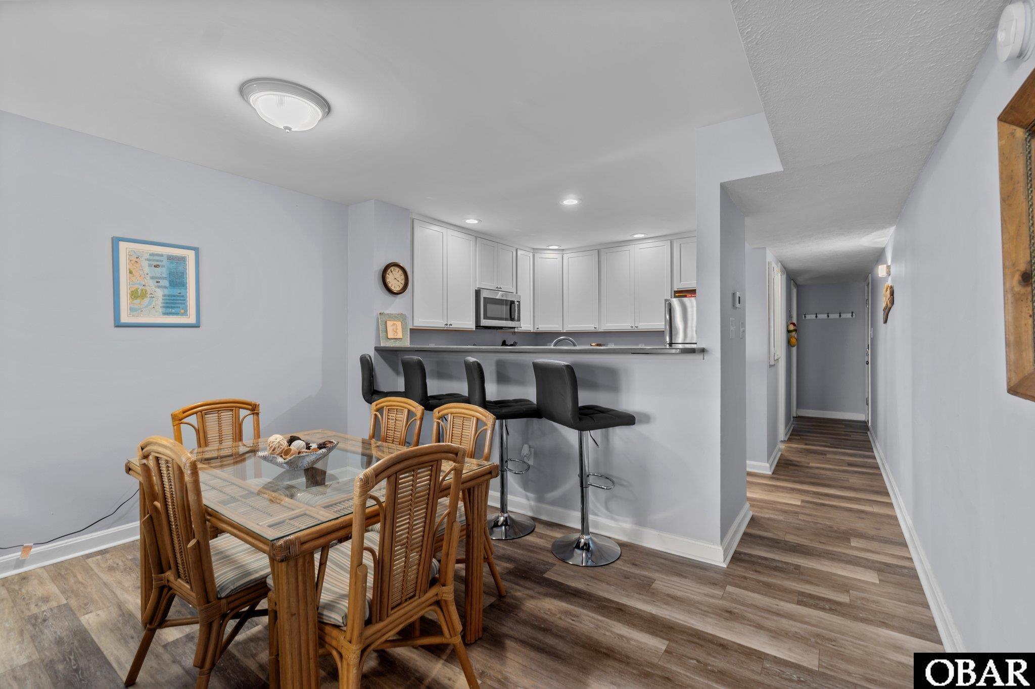 LOWEST PRICED OCEANSIDE COROLLA CONDO FOR SALE AND RIGHT ACROSS FROM THE PRIVATE COMMUNITY OCEAN WALKWAY! Discover the perfect beach getaway with this beautifully fully furnished updated 2-bedroom, 2-bathroom condo in sought-after Corolla, just a 2-minute walk to the pristine sands! Recently enhanced with a fresh exterior paint job completed in December 2025 and assessment paid, this unit boasts new decor and lighting that brighten up the open-concept living space. The one-floor layout features bedrooms located on opposite sides for added privacy, while the relaxing balcony allows you to take in the refreshing salt air and soothing sounds of ocean waves—ideal for enjoying your morning coffee or evening sunsets. Modern amenities include numerous updates, such as a complete HVAC replacement in 2022, new plumbing, newer water heater, and stylish luxury vinyl plank flooring that complements the remodeled kitchen, which features quartz countertops, soft-close cabinetry, and stainless steel appliances. This condo also comes equipped with a washer and dryer located conveniently across from the main door. Its unbeatable location offers proximity to the Currituck Club Golf Course and Harris Teeter shopping center filled with shops and restaurants, all within walking distance. Additionally, the very reasonable HOA fee covers almost all insurances (excluding contents) and recent building improvements, including a new roof in 2020, highlight the exceptional value this condo offers for both personal use and investment potential. Take advantage of this incredible opportunity to own a slice of paradise in Corolla! Schedule your private showing today and experience beachside living at its best.