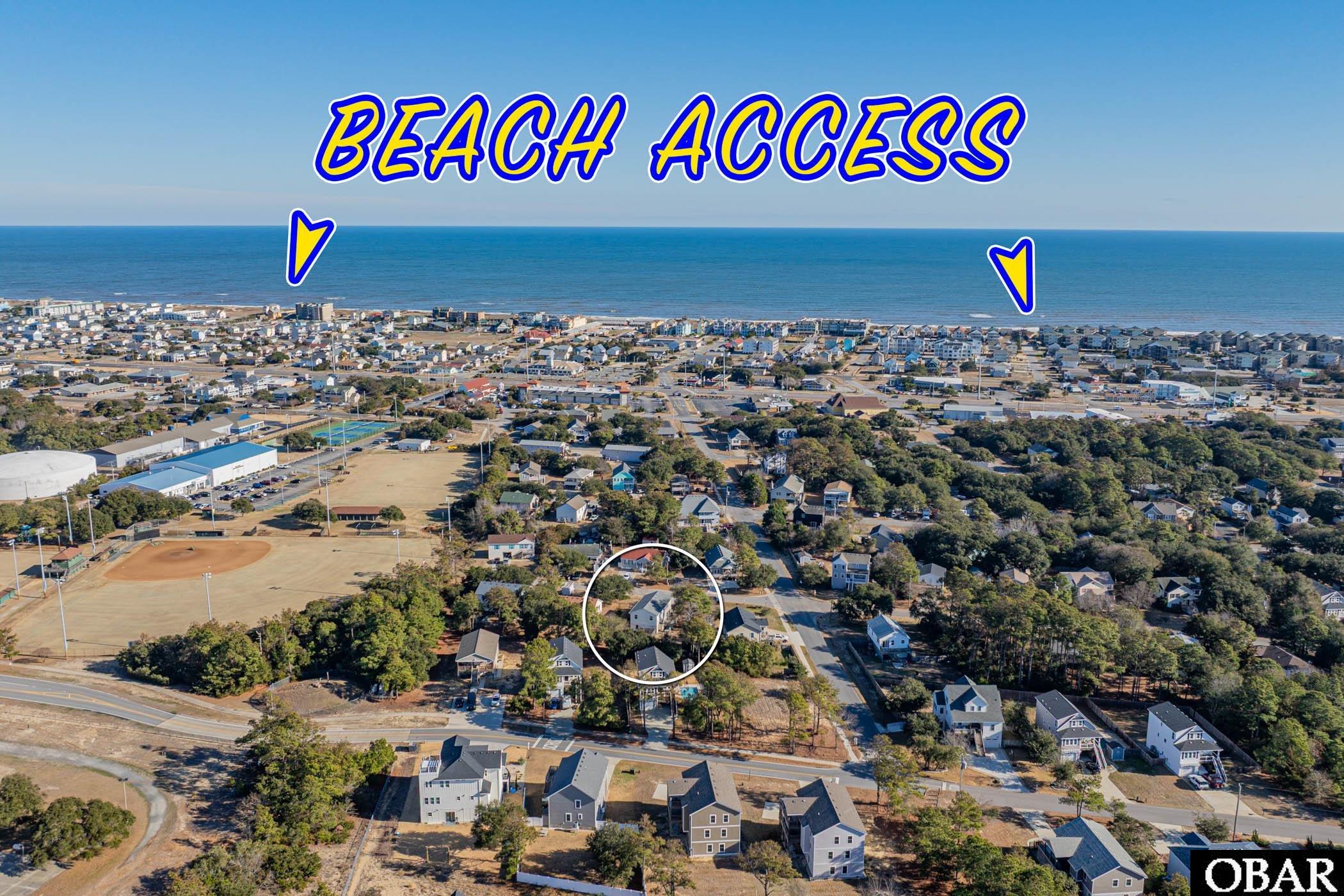 The location is hard to beat. Enjoy an incredibly walkable lifestyle with easy access to popular Outer Banks restaurants and bars, First Flight Elementary, Middle, and High Schools, Dare County Recreation Park with pickleball and tennis courts, Aviation Park, the Kill Devil Hills Library, and the Thomas A. Baum Senior Center. Take a stroll to the Wright Brothers National Memorial for stunning sunrise or sunset views, and reach the nearest public beach access with free parking in under a mile.