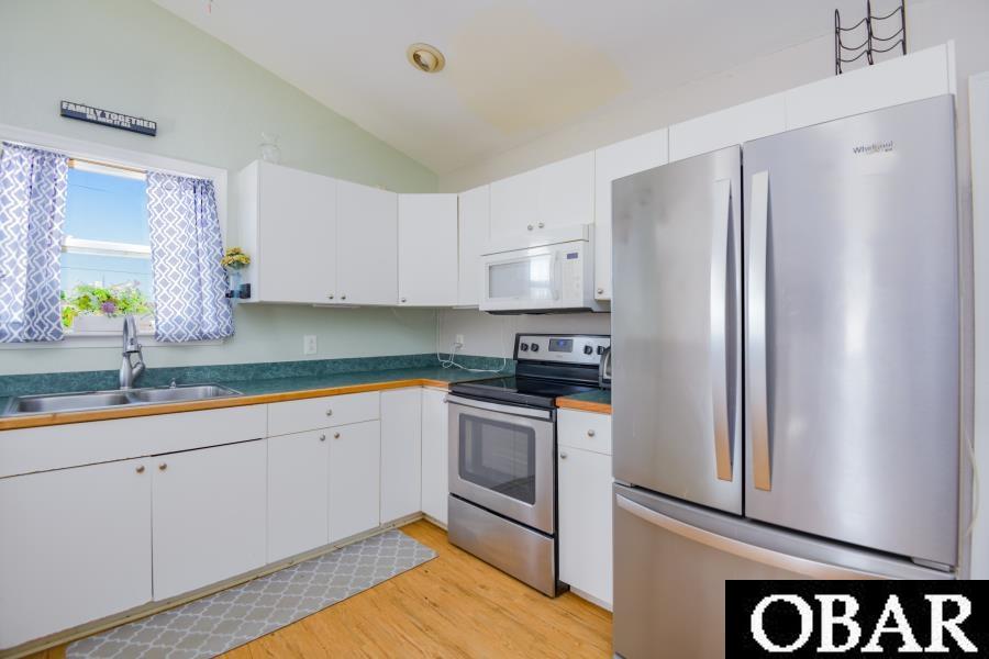 Great location just inside the Colington Harbor Gate. Take a left inside the gate and you will find this home a little ways down on the left. Far enough from the gate but a quick drive to the beach, grocery, schools, & restaurants. This home has great outdoor space with a screened in patio, covered patio, spacious fenced in yard, and a great sun deck. Enter through the dry entry of the carport and you will find a bonus in law room that is great for guests staying for the weekend or make it your home office or kids play room. Upstairs you have an open floorplan with high ceilings, a large living area, and a kitchen/dining area combo with plenty of cabinet and countertop space. The washer & dryer closet is just off the dining room. Toward the back of the home you will find three good size bedrooms, one is an ensuite and the other two share a bathroom with a tub/shower. This home is perfect for a small family, starter home, or a couple looking to work from home. Check it out by scheduling on showing time.