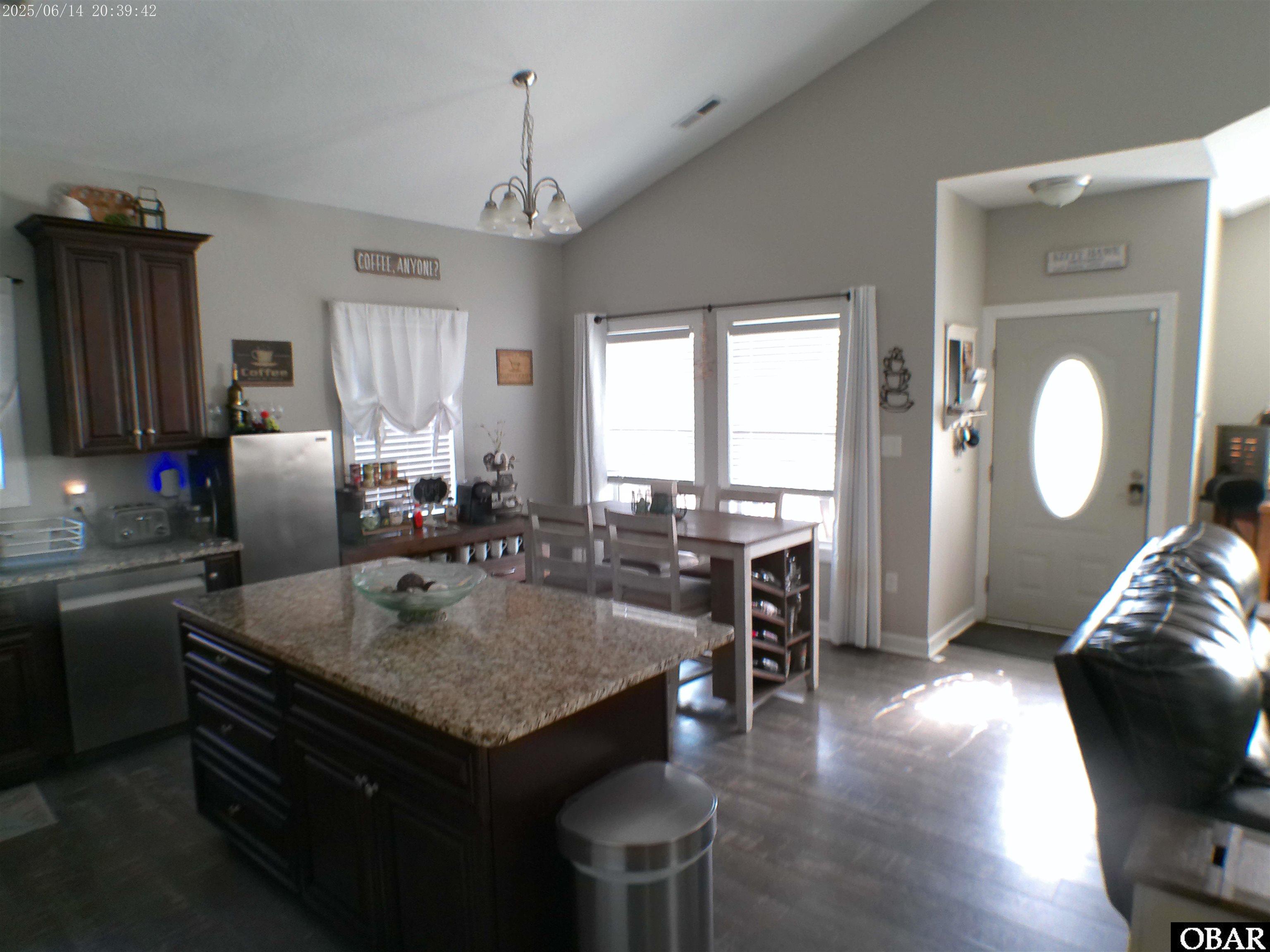Located in Kitty Hawk with a close proximity to the beach and restaurants. This home has been well taken care of, and it shows. Ground level offers a large storage room, carport and dry entry with a mini split. Main living area has an open floor plan with cathedral ceilings in the kitchen, living and dining areas and 9’ ceilings throughout the kitchen has granite countertops and stainless-steel appliances. The Master Bedroom has a walk-in closet and large double vanity bathroom with walk-in shower. Home has a gas Generac generator with three large propane tanks that convey, so you will have a backup power source.