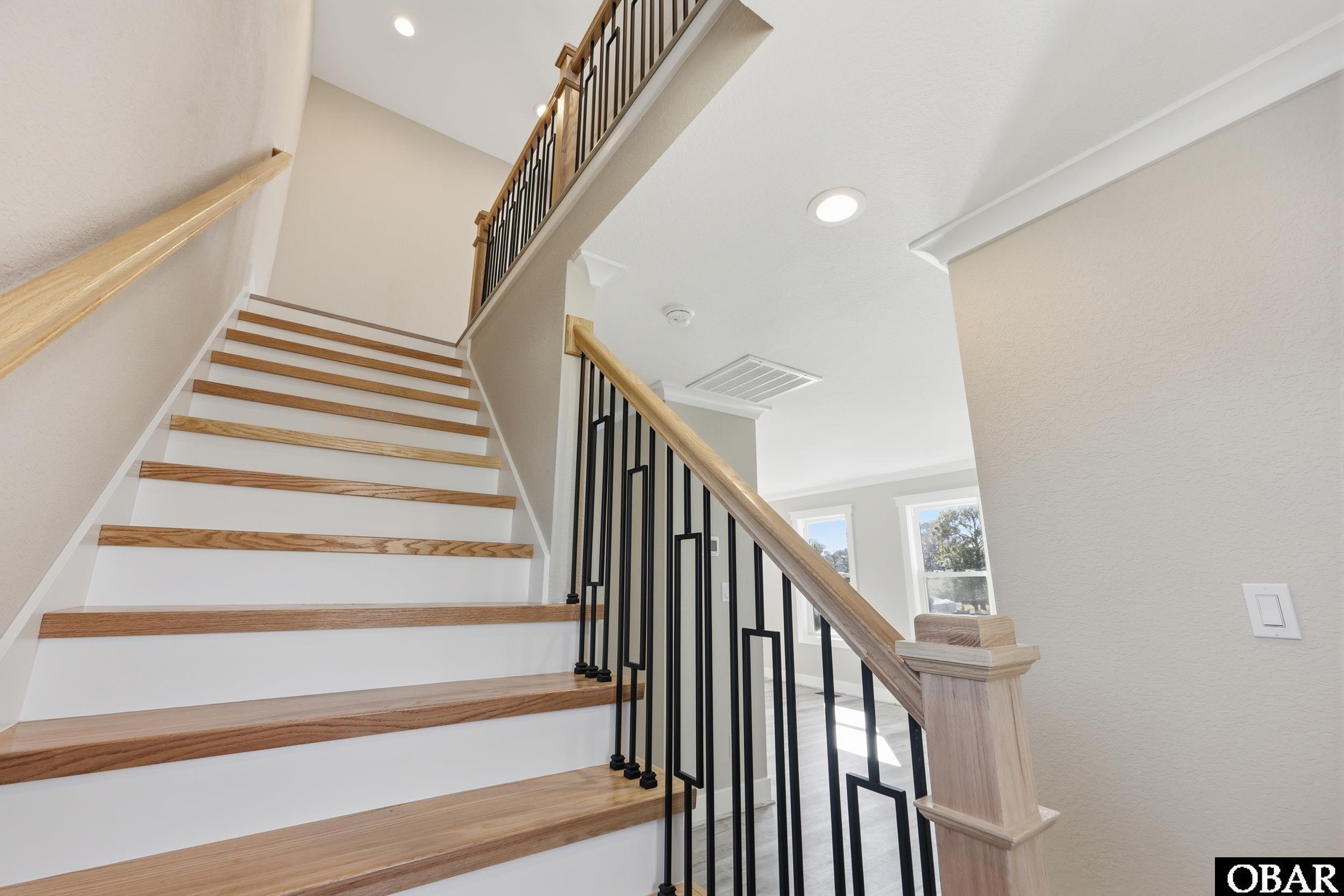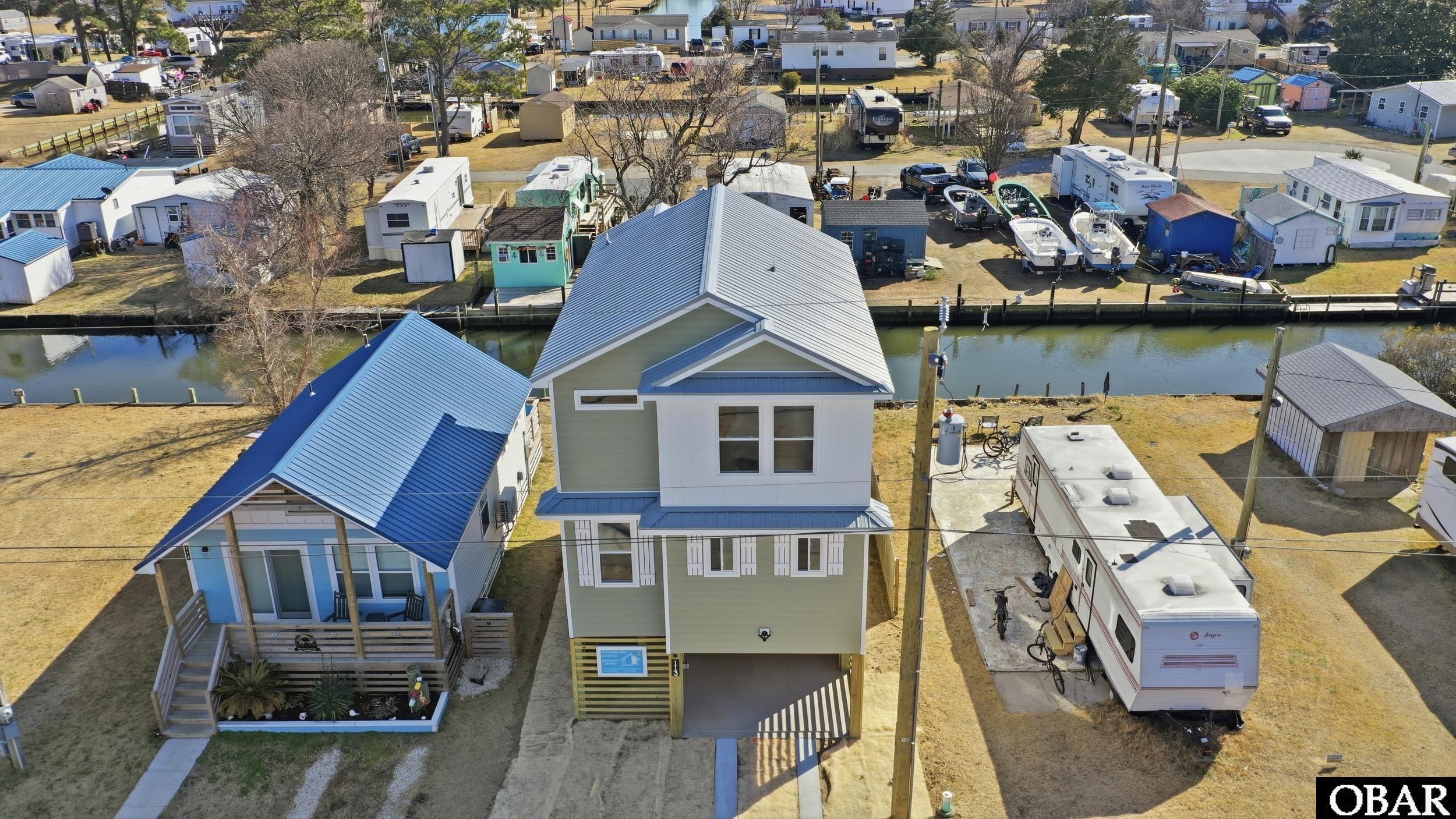 Experience the best of coastal living in this stunning new construction home perfectly positioned on a canal with direct access to the beautiful Currituck Sound. Designed for both comfort and style, this elevated waterfront retreat offers modern finishes, thoughtful design, and effortless indoor-outdoor living. The bright, open-concept main level showcases luxury flooring, abundant natural light, and a seamless flow between the living, dining, and kitchen areas, making it ideal for entertaining or relaxing after a day on the water. The kitchen is beautifully appointed with granite countertops, custom cabinetry, and a spacious breakfast bar perfect for casual dining and gathering. The inviting great room is a true focal point, featuring a sleek electric fireplace and a stylish wet bar--perfect for hosting guests or enjoying cozy evenings at home. Just off the great room, step onto the private deck where you can unwind and take in the peaceful canal views and coastal breezes. This home offers two private en suites, providing exceptional flexibility. The spacious primary suite includes private deck access, creating a serene retreat to enjoy the waterfront setting. Private office/flex space is a great place to host additional guest. After a day of boating or beach outings, rinse off in the convenient outdoor shower. Enjoy true waterfront living with canal frontage that leads directly to the Sound--launch your kayak, paddleboard, or boat right from your backyard. The elevated construction provides covered parking and additional enclosed storage space, combining practicality with coastal charm. Whether you're searching for a primary residence, vacation escape, or investment opportunity, this brand-new waterfront home delivers modern construction, upscale features, and direct water access in one exceptional package.