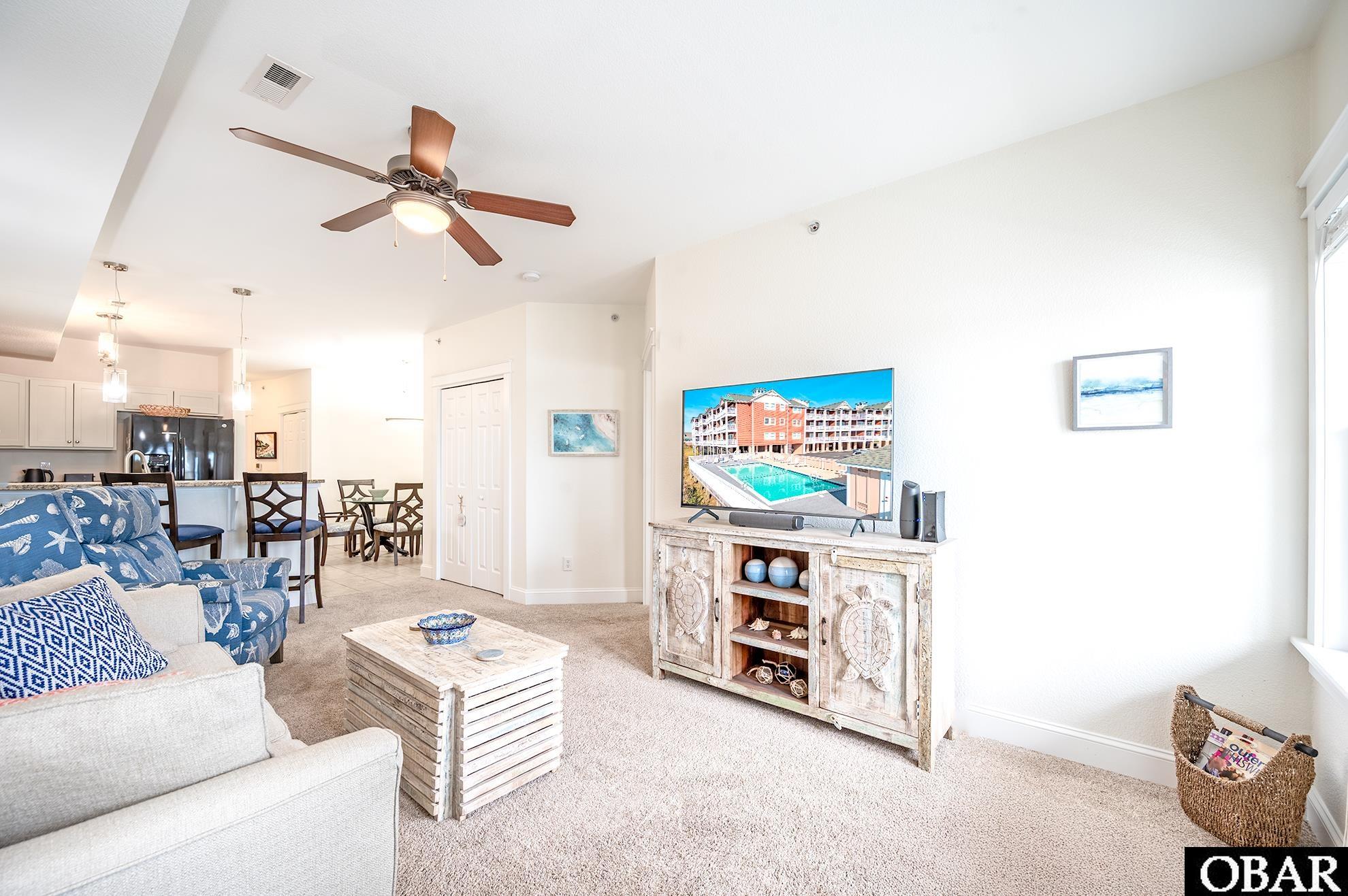 Don’t miss this beautifully maintained two-bedroom condo with two full baths and a half bath in The Landings at Sugar Creek. Thoughtfully appointed and sold fully furnished, this turnkey property is ready for the 2026 rental season or your own coastal retreat. Start your mornings on the spacious covered deck with a cup of coffee, and unwind in the evenings with your favorite beverage after a sun-filled day on the Outer Banks. Inside, you’ll find a comfortable, nicely appointed living space designed for your relaxation along with a well designed kitchen. Community amenities include a soundside pool with restrooms and showers, a clubhouse with fitness equipment, and a private pier offering convenient water access. The prime location places you just minutes from Jennette's Pier, Oregon Inlet Marina, Hatteras Island, and Roanoke Island, where you can explore all the shops, dining, and attractions of Manteo. Additional highlights include assigned covered parking for two vehicles and the convenience of elevator access.