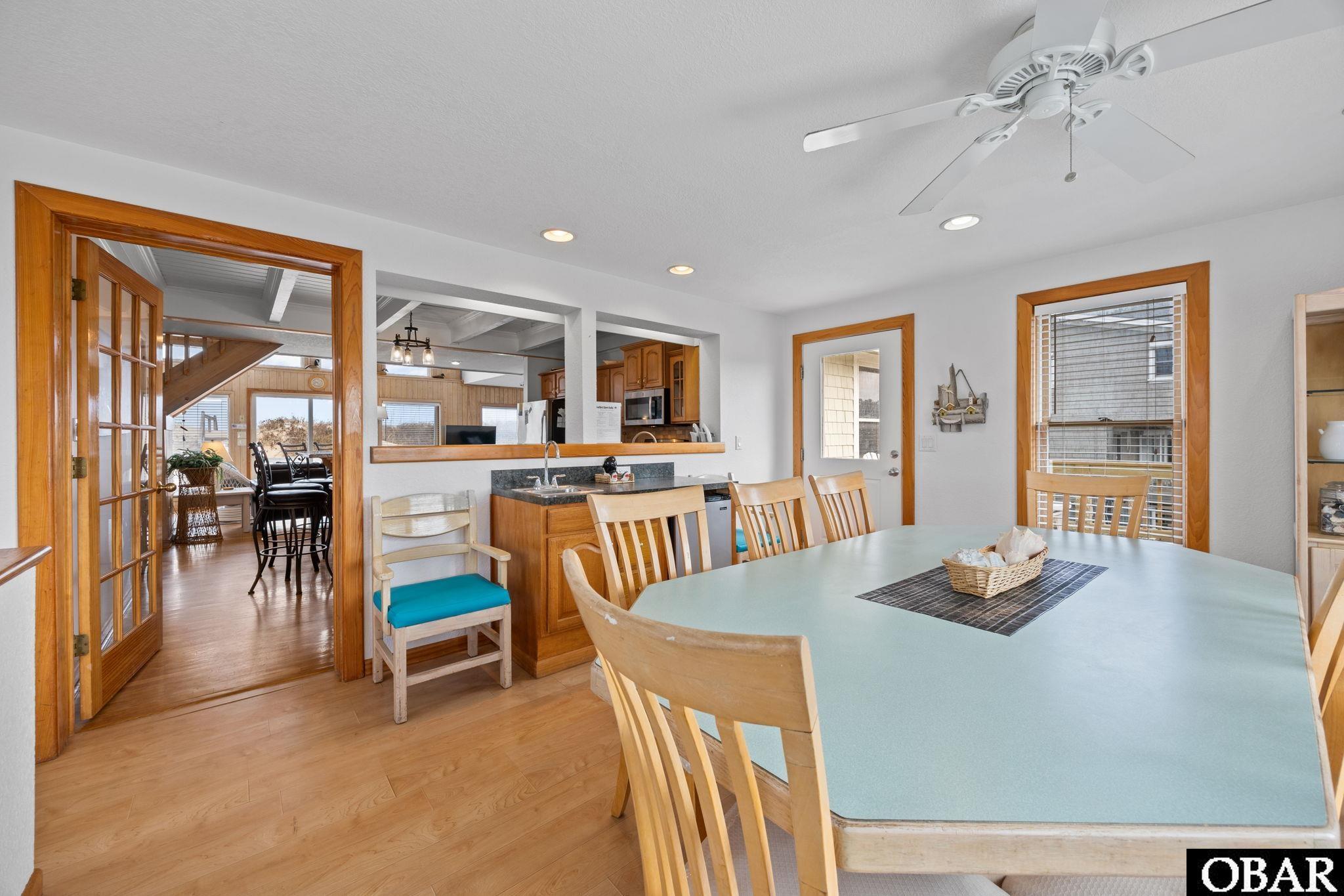 watching dolphins play in the surf. An outdoor shower for post-beach rinses, as well as a convenient downstairs toilet. Plenty of storage areas,
