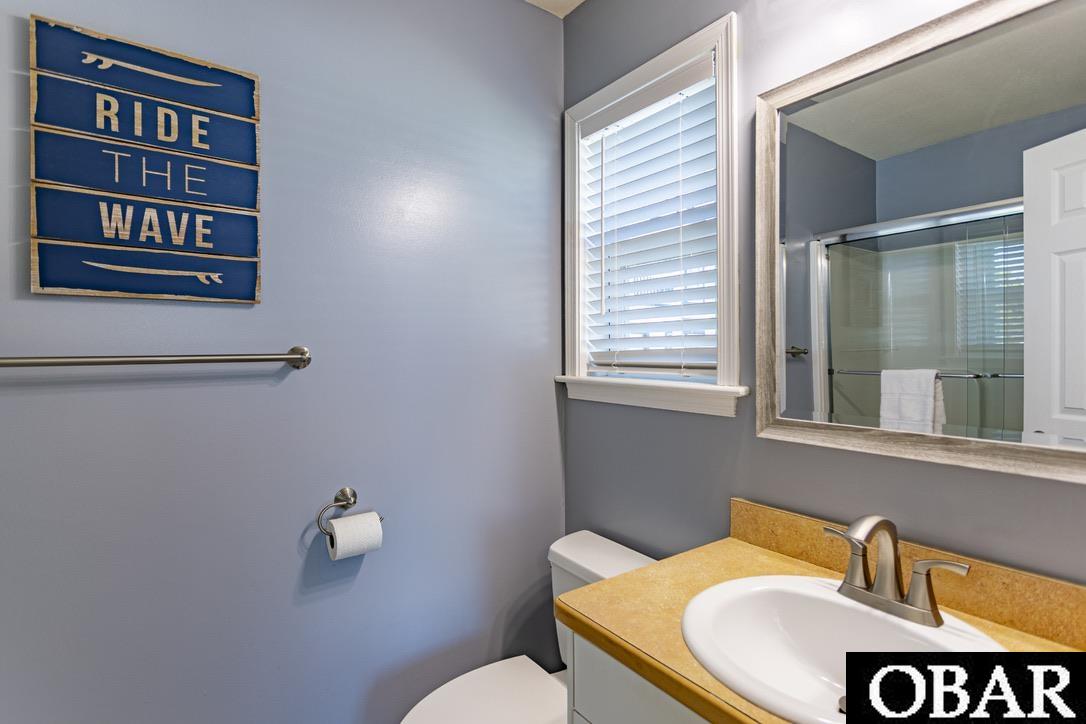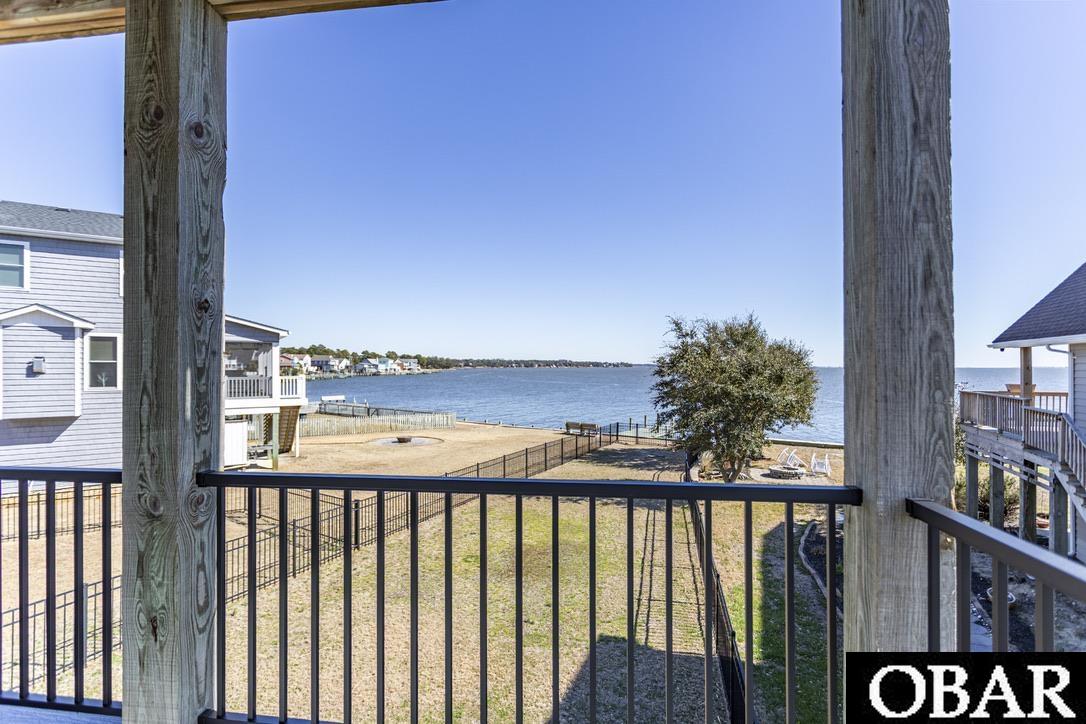 Spectacular soundfront home with fenced yard, trex decks, shared dock, game room, screened porch, garage storage space, and all 4 bedrooms have attached bathrooms! Beautiful water views greet you from EVERY bedroom, EVERY deck and from the main living space. The home comes fully furnished and decorated! The top floor features cathedral ceilings, open layout with kitchen, dining and ample living space. Plus a large bedroom with walk-in closet, attached bath and private deck with sound views. The living space features built-in shelving, gas fireplace, and a wall of windows and sliders that faces the soundfront to showcase the views. The sliders open to a full-length sound-facing trex deck, brand new in 2025. The kitchen features stainless steel appliances and sound views as you prepare dinner. (There's also a gas line connection on the top level deck for a gas grill.) The mid-level features three bedrooms, all with their own bathrooms. Two of the bedrooms share a soundfront deck, one of the bedrooms has it's own private deck with sound views. There is a laundry room on this level also. The ground level space features a game room with an attached soundfront screened porch. The garage space was converted with a knock-down wall added to make a large locked owners storage space, big enough for kayaks, beach/toys, etc, plus a renter-friendly storage space and dry entry. The backyard is fully fenced and leads to a soundfront dock that is shared with one neighbor. All decks are trex with aluminum rails, as are the entry steps. Back decks and entry steps were replaced/upgraded in 2025, front decks in 2024. The dock was upgraded in 2024 with new marine grade wood. The bulkhead was recently reinforced, with 20' posts and stainless rods (2023). The home is located in the gated community of Colington Harbour. The yearly HOA fee is $365/year. Yes, that's it. And you get to use the soundfront beaches, tennis courts, soundfront dogpark and playground. There's a community pool (also on the soundfront) that can be joined for an additional fee. Colington Harbour is one of the largest and most established Outer Banks communities, a popular spot for boaters, kayakers, water enthusiasts and beach lovers. It has its own harbour and marina, with easy jettied access to the Roanoke Sound.