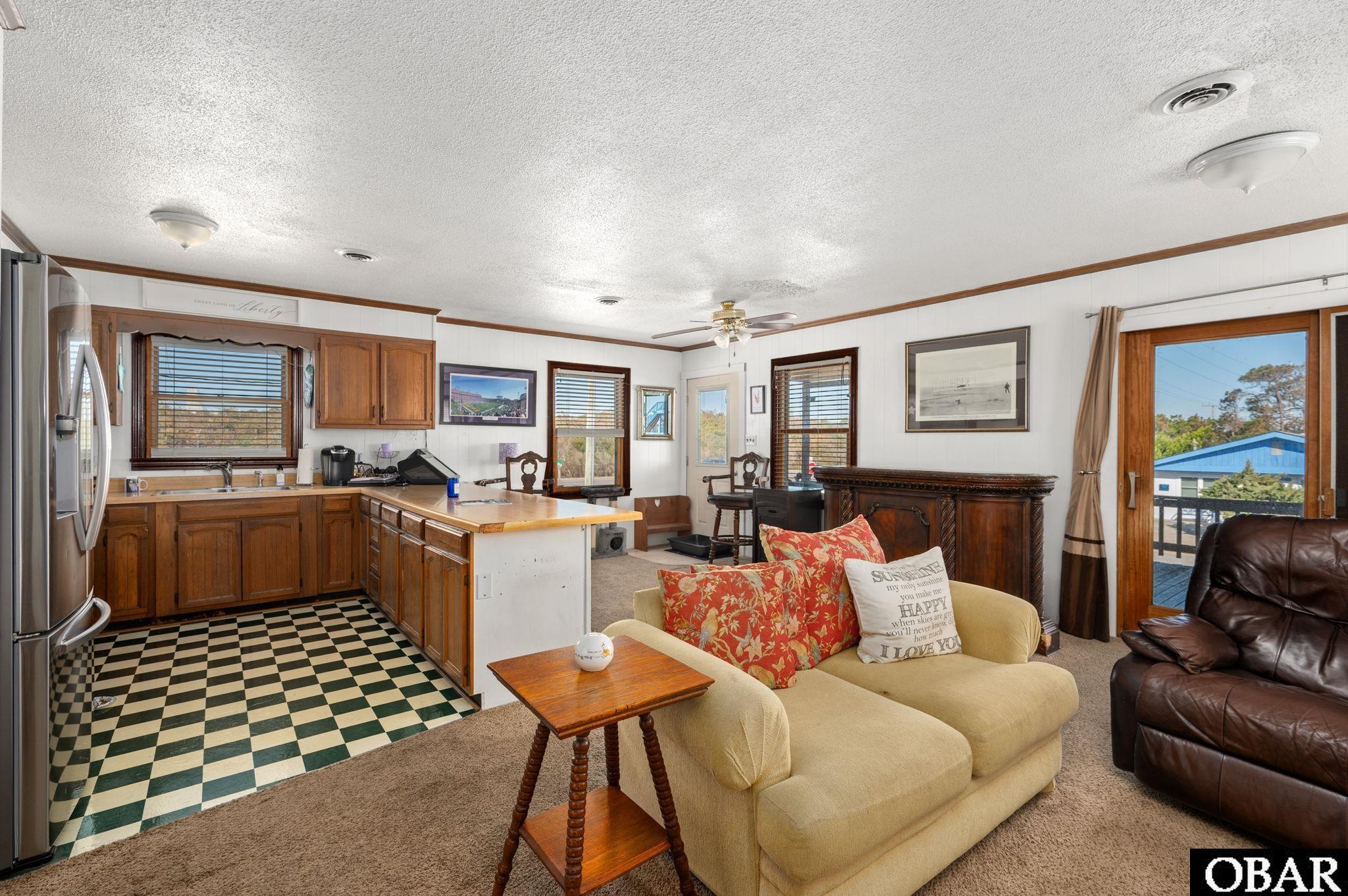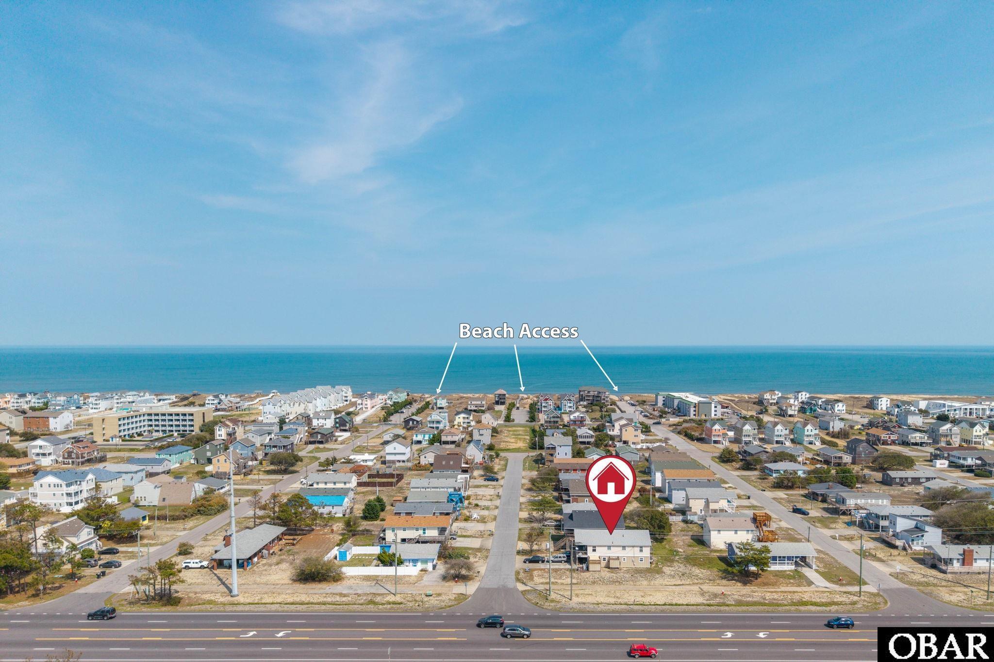 Discover a great opportunity with this well priced home in a highly desirable location across from the Wright Brothers National Memorial! Enjoy direct ocean access to incredible beaches, and the many attractions, including restaurants, bars and shops nearby. This property is perfectly positioned to enjoy everything the Outer Banks has to offer. The main level features a 3 bedroom, 2 bath open living, dining, and kitchen design, that flows onto a covered porch—ideal for relaxing or outdoor dining. The hall bath includes heated tile floors and a shower/tub combination recently installed. Above the tub tile/finish work is still needed for completion. A large portion of the ground level is partially finished, and sectioned off with drywall. One room on ground level is finished, and would make a great office, exercise room, or hobby area. When combined with the garage, there is ample storage and workshop space. Over 2,000sf under roof, including the garage. Roof is estimated to be less than 10 years old, and the septic field was replaced in 2017. Other updates include newer board-and-batten siding on the lower level, with Dutch lap vinyl siding above. The property is being sold as-is, and the seller will not be making any improvements prior to closing. Price to reflect current condition, this home offers exceptional value for the location and is well positioned for a quick sale to the right buyer.