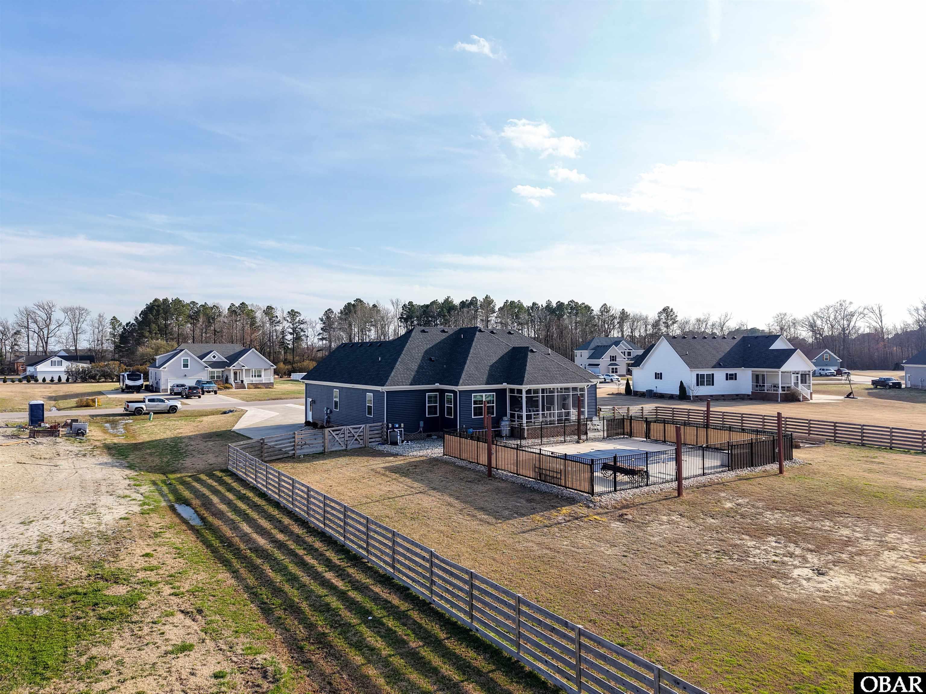 Step outside and enjoy the outdoor living features, including a large screened-in back porch ideal for relaxing or dining outdoors. The saltwater fiberglass 15 x 30 pool provides a refreshing centerpiece for outdoor gatherings, while the .91-acre property offers plenty of room for activities, gardening, or open space enjoyment. Additional concrete parking with RV electrical and utility connections adds convenience for recreational vehicles, while a separate storage shed provides space for tools and equipment.