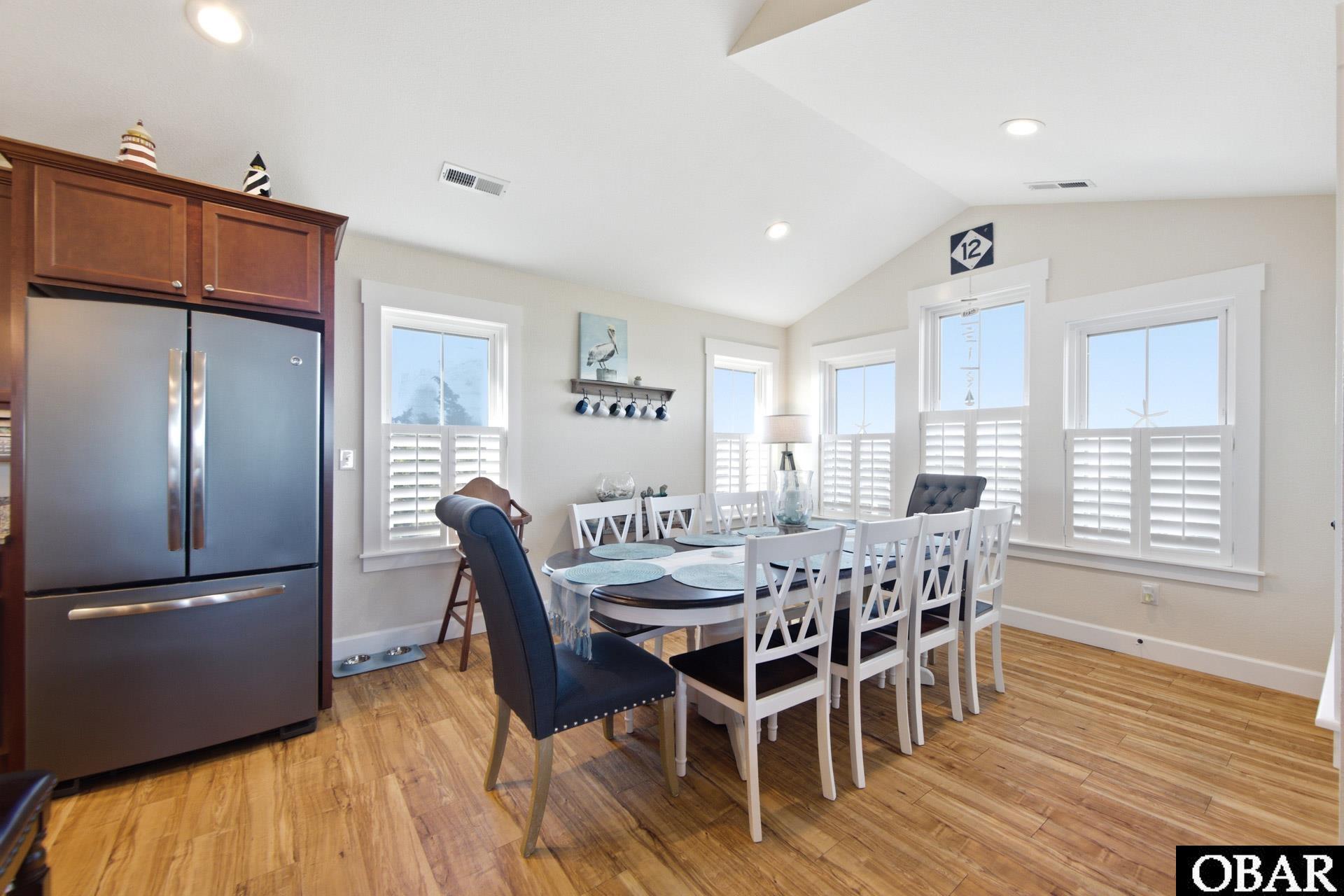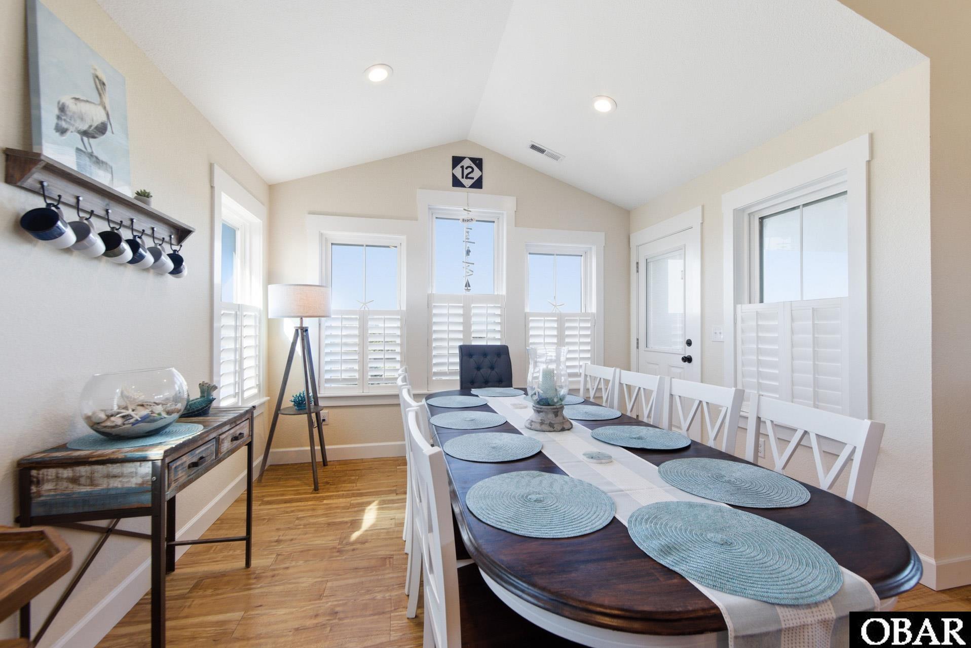 Pristine home on a large 15,000 s.f. lot with deeded access to the wide beautiful National Park beaches of Salvo! This 4 bedroom home has two ensuite bedrooms (one upstairs and one downstairs) and 2 others share a jack-n-jill bath. A cute little game room adds living space to the first floor and the covered decks to the west will shade you in the summer. The great room upstairs has fabulous views of the the sound, and glorious sunsets will be sure to delight you. Kitchen has granite countertops and lots of beautiful cabinetry. I love the paint colors, flooring and finishes of this house, very coastal chic. You'll also appreciate the under house entrance located near the outside shower. Out back, there is a fire pit to enjoy and swings for the young at heart. The house is close to shopping and just a short walk or bike ride on our pathway will take you to more attractions such as the Salvo Day Use Area ( a great place to launch a kayak or play at your favorite wind sport!) Discover the best of Salvo at Paradise by the Sea!