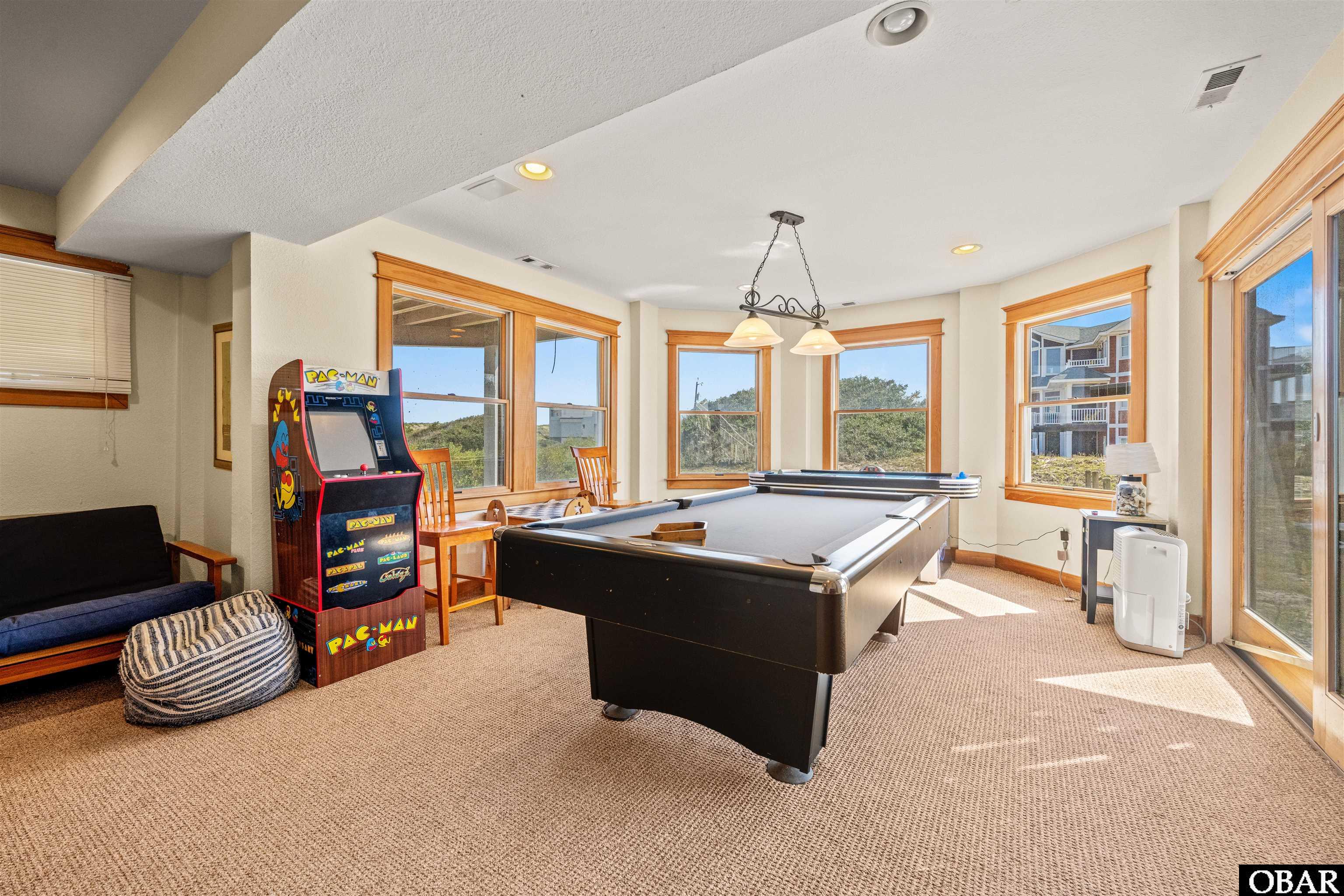 Recent upgrades include refreshed interior with all-new furnishings, new mattresses, upgraded kitchen countertops and appliances, six smart TVs, arcade games, hockey table, ping-pong, new Kinetico water filtration system, high-speed internet, and a security camera system. Exterior improvements include new front siding, fresh paint, refreshed pool deck and railings, new pool and outdoor furniture, new hot tub, and a county-compliant trash corral.