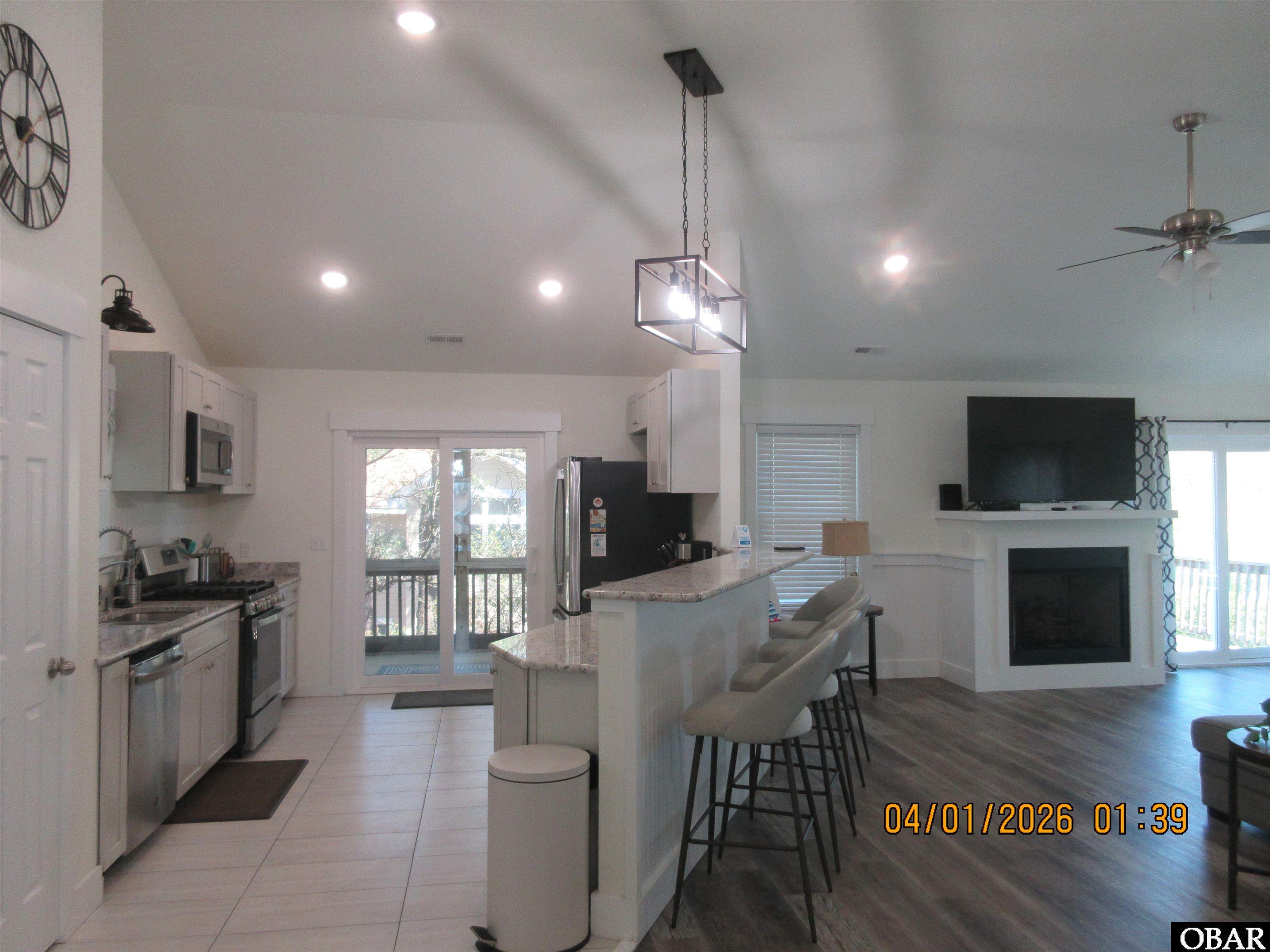 Look at this 3,000+ sq.ft. home still having the BRAND NEW look and feel!!! Don't overlook this one! Built in 2021 you'll find that this 5 Bedroom plan has it all! EACH BEDROOM has it's own PRIVATE FULL BATH, Ensuite/Bedroom #1 on top living floor also has 1 half bath in the living area w/Gas Fireplace, 3 Ensuite/Bedrooms on 2nd level with dedicated Laundry Room INCLUDING Washer/Dryer, a FOLDING TABEL and Mop Sink too! The 5th Ensuite/Bedroom is located on the Ground level with another 1/2 Bath for use in the Game Room / Wet Bar & Pool area. Kitchen has SCREENED PORCH that leads to outside to the Sun Deck for your morning coffee and to plan your day, facing east you'll have the shade in the afternoon to relax and plan dinner! This Lot has beautiful Live Oaks that provide "filtered privacy" for the top level screen porch off the Kitchen as well as the 2nd level decking. Monteray Shores subdivision is a community to enjoy; they offer you and your guest (without extra charge) the CLUB HOUSE / FITNESS CENTER & COMMUNITY (w/Kidde) POOL(s), Pickle Ball/Tennis Courts, Corn Hole, Bocce Ball, Basketball Court ALL WITH NO EXTRA FEES TO PAY for everyone to enjoy these Amenities! Near by in the community you'll also find a Nature walkway w/Gazebo to see the evening sunsets, also a Shallow draft BOAT RAMP perfect for Kayaking or small boating; if your seeking to soak up the amazing NC Sunsets, this may be your kind of place! Public Ocean Access is near by; Call for more information and book your tour today!