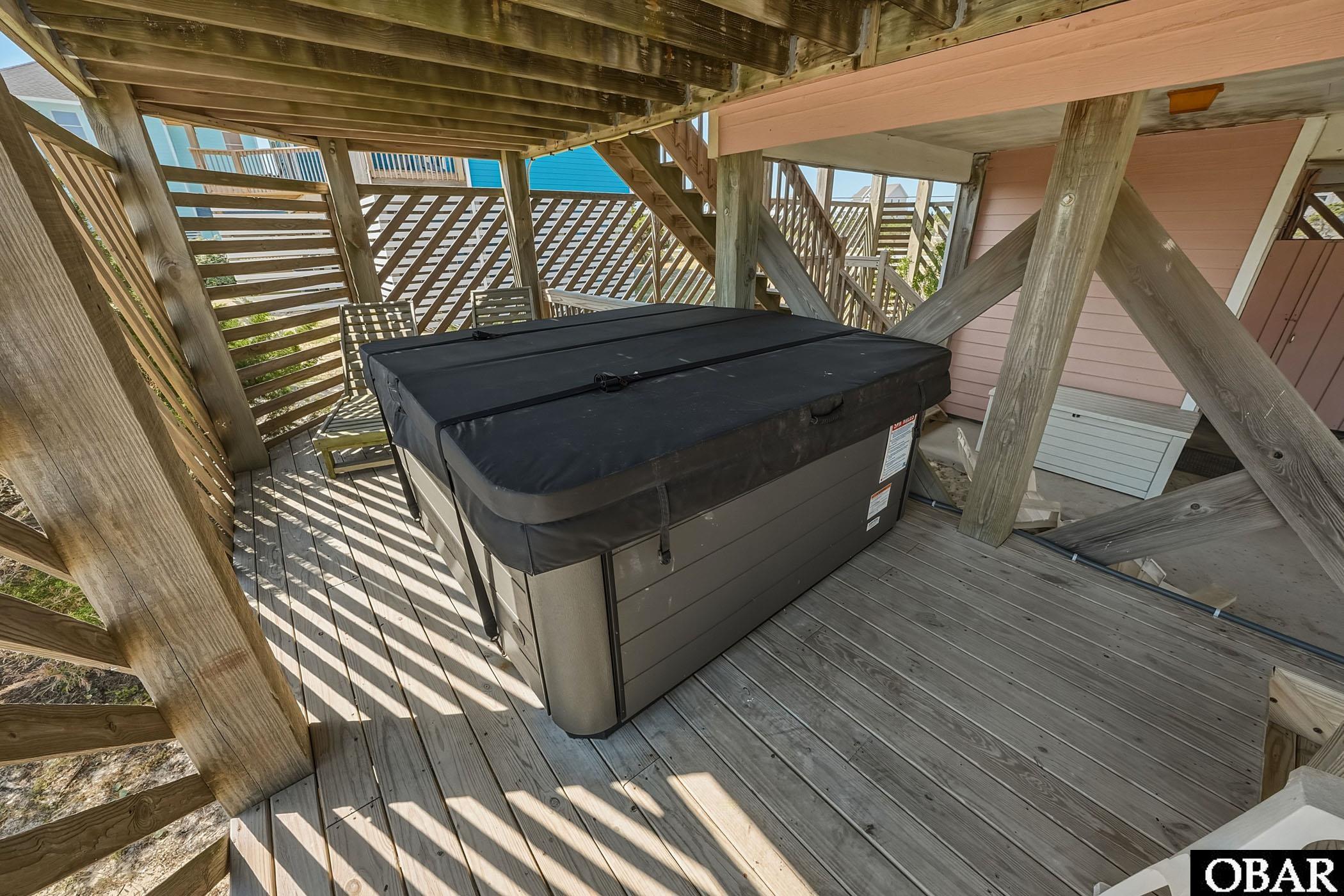 Downstairs you’ve got dry entry, covered parking, an outdoor shower, hot tub, and a storage space that’s perfect for stashing all your beach gear and fishing stuff.
