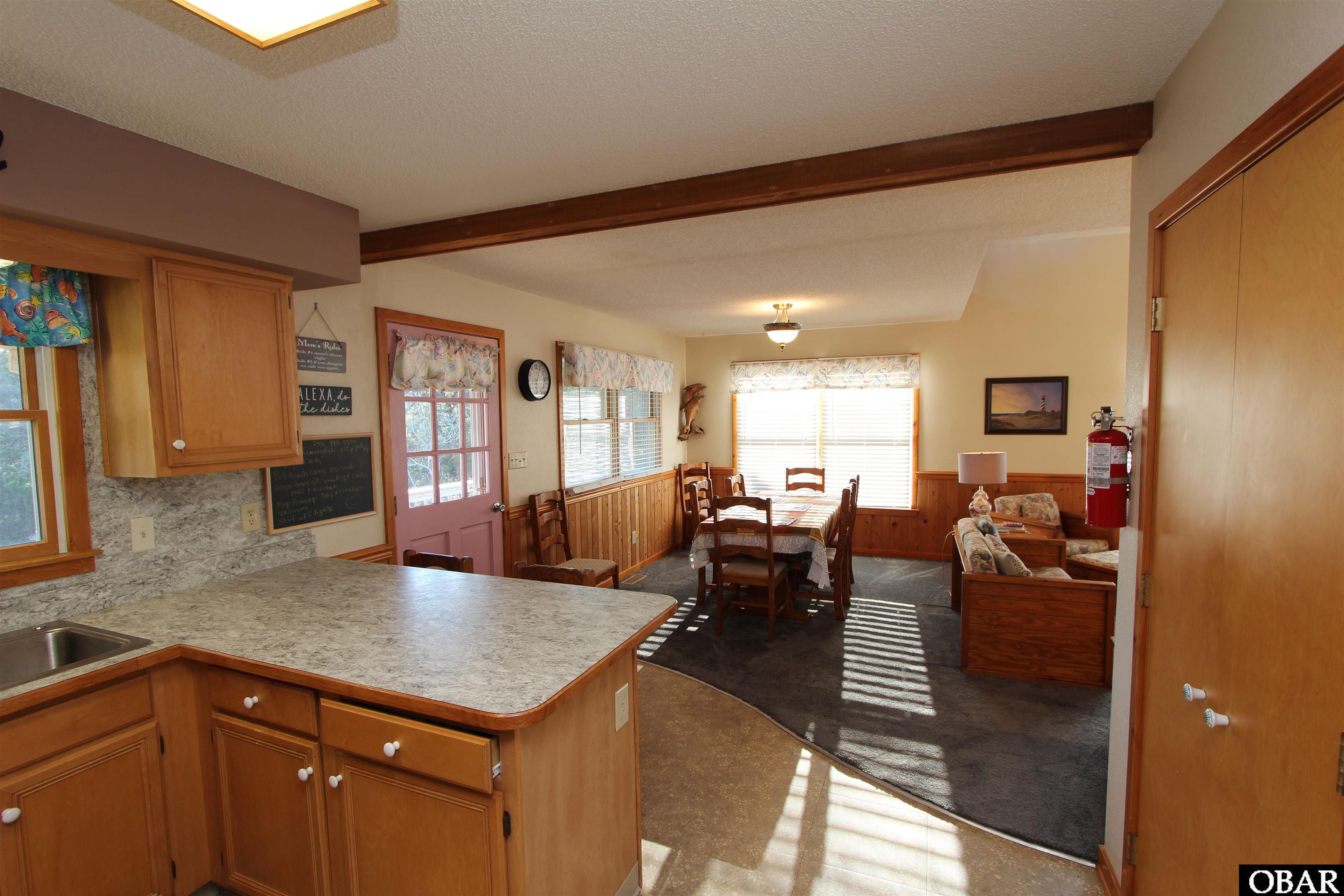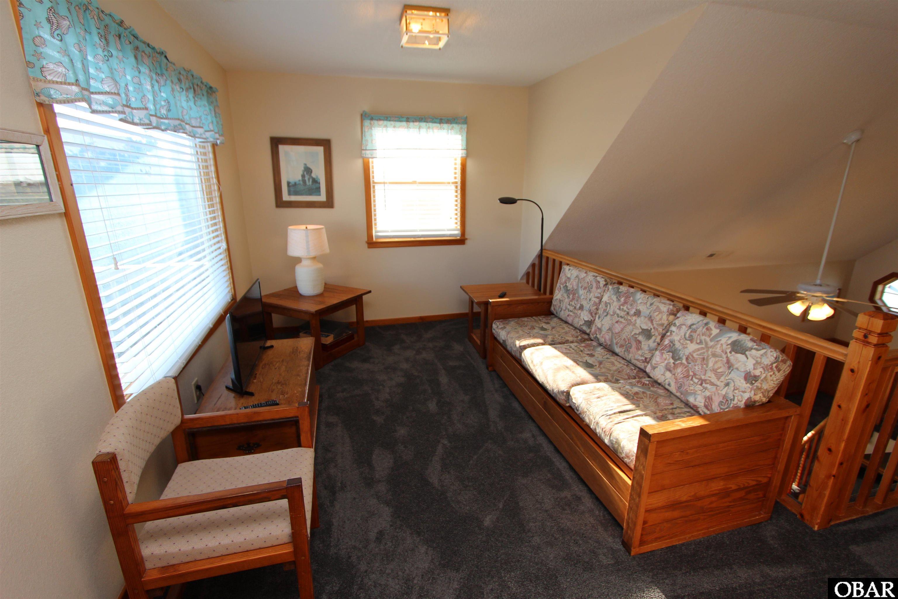 Tucked away at the end of a quiet cul-de-sac, this Avon sound side home offers a rare opportunity outside of a rental program—ready for immediate enjoyment or occupancy. The property features ample concrete driveway space for car and boat parking, along with covered parking, an outdoor shower, and a ground-level sitting area perfect for relaxing after a day on the water. Inside, the foyer entry includes a storage closet and convenient laundry area. The mid-level features an open-concept layout with vaulted ceilings, kitchen and dining area, along with a private ensuite bedroom. Upstairs, you’ll find two additional bedrooms, a full bath, and a loft space ideal for a home office or additional lounging area. Two spacious front decks provide great outdoor living, with a partial ocean view from the top level. Recent updates since 2019 include the roof, HVAC system, water heater, appliances, kitchen countertops, carpet, and both decks—offering peace of mind and move-in-ready convenience. Greater Kinnakeet Shores HOA is nearby and for an additional fee offers pool, tennis and pickleball. Whether you’re looking for a primary residence or a second home getaway, this well-maintained property is ready to enjoy from day one!