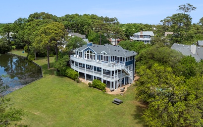 Getting out of bed has never been easier when you stay at Morning Brew for your next Outer Banks vacation. Part of the Linkside community in the Village at Nags Head, this well-maintained three-bedroom home combines the best in comfort and convenience. Two levels of decking allow multi-directional views of the lake, golf course and sound. The rever