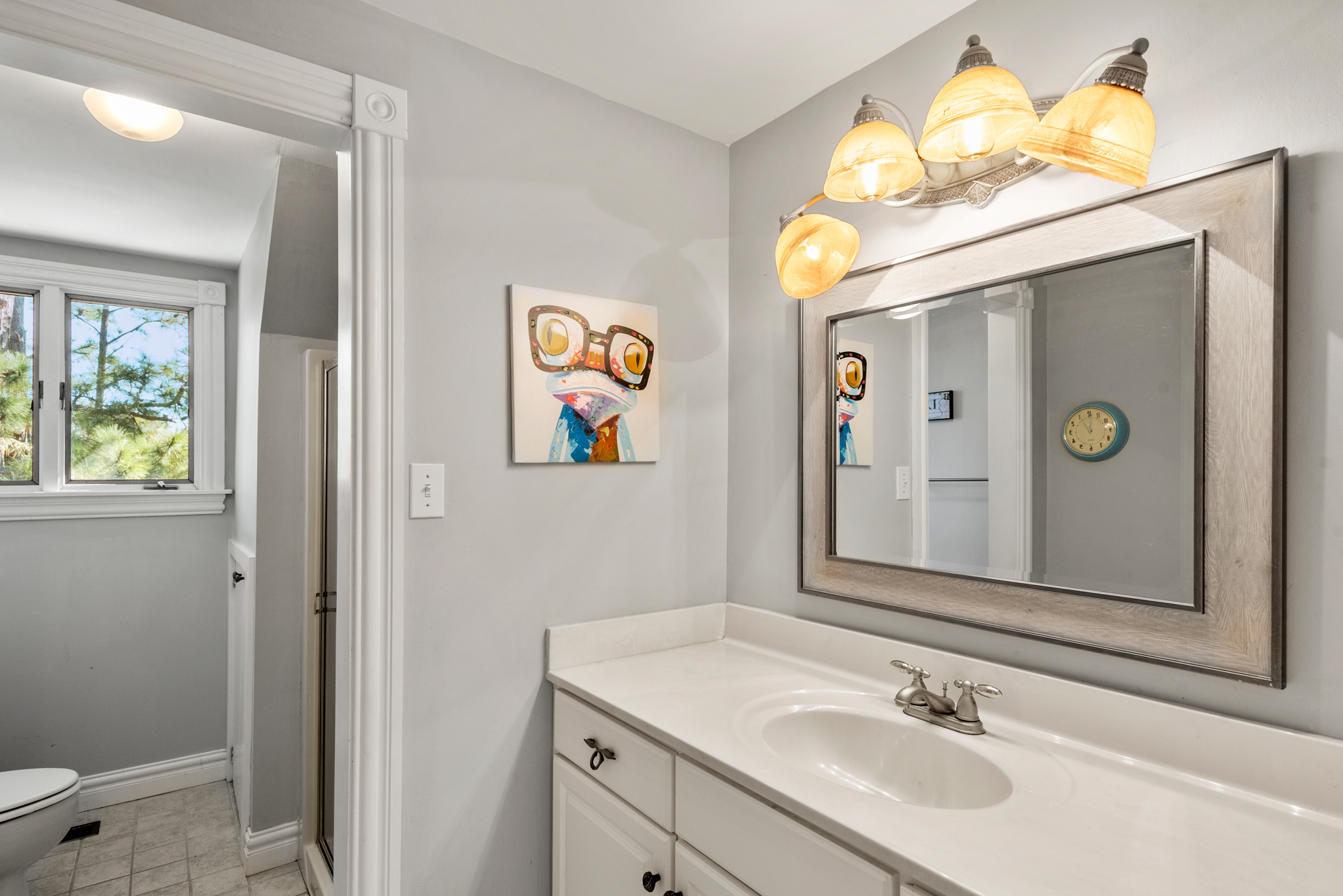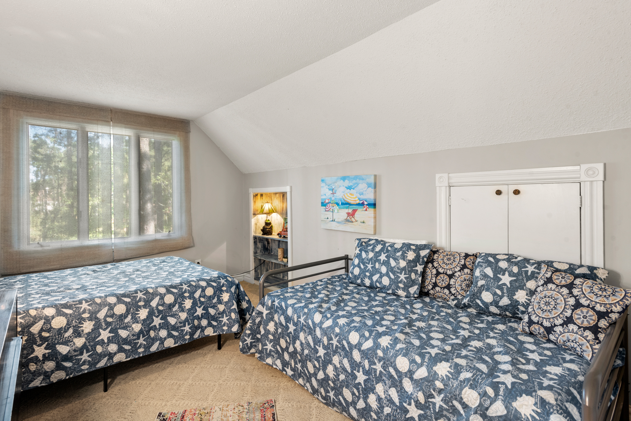 Upstairs on the main level, a traditional floorplan features the spacious eat-in kitchen area as the heart of the home, with water views and access to the deck for convenient indoor/outdoor living. A formal dining area, which provides seating for 8 and even more views of the lake, is adjacent to the tastefully furnished living area with access to the sunroom. Across the foyer is the master with a king bed and en suite bathroom. Step outside the front door to enjoy sound views and breathtaking sunsets from the front porch. Two additional bedrooms and a loft space with a daybed are located on the top level, with access to a full bath.