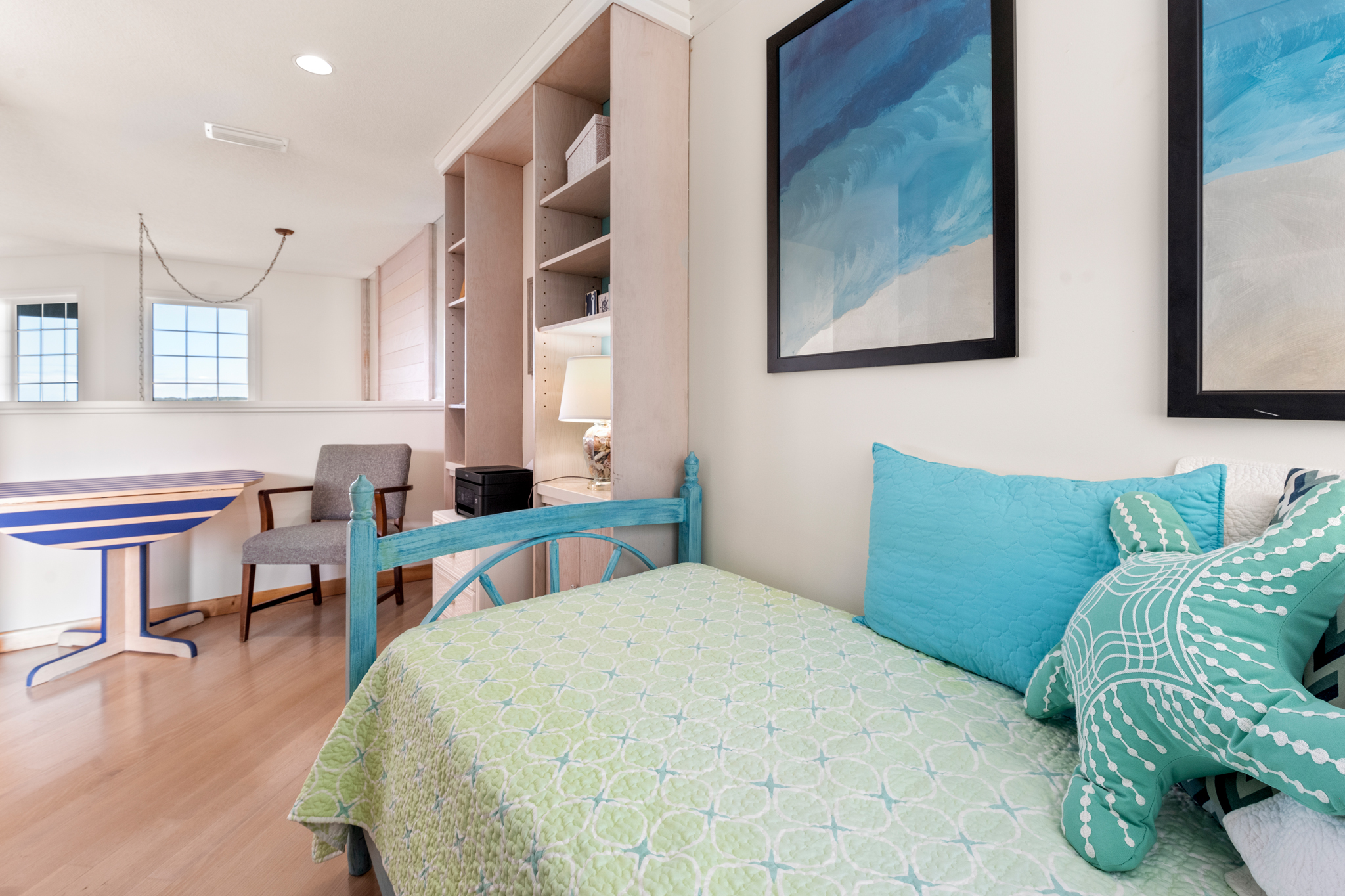 Upstairs, the spacious primary suite with king bed opens up onto a private balcony for a stunning view - the perfect place for admiring sunsets or watching the fireworks on the 4th of July. Two additional bedrooms (including a second ensuite) and a loft space with twin bed will comfortably accommodate family and friends. Even your four-legged companions are welcome at this dog-friendly townhome.