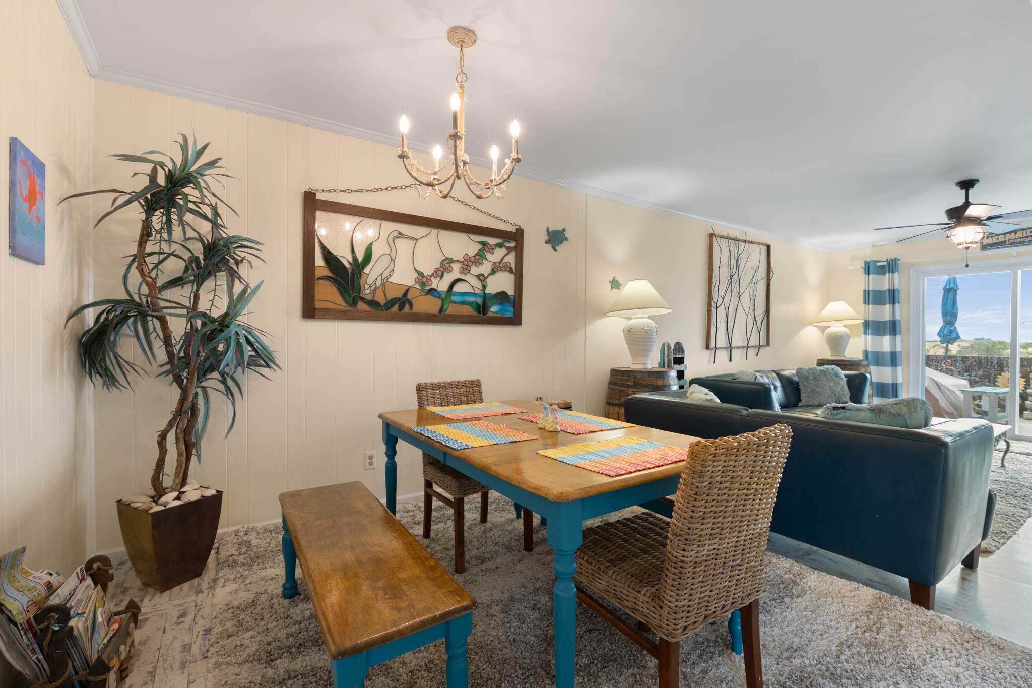 Thoughtfully decorated and furnished, the Mermaid’s Lounge is perfectly situated with views of the west corner of Jockey’s Ridge and the Roanoke Sound with Manteo in the distance. Home is perfect for couples and small families. Only minus? No cable. Plenty of streaming options via Xumo Play and Vizio. Watched too many Midsomer Murders episodes. There are worse habits. Cheers!- Reviewed On: 10/6/2024