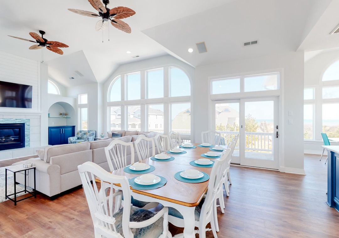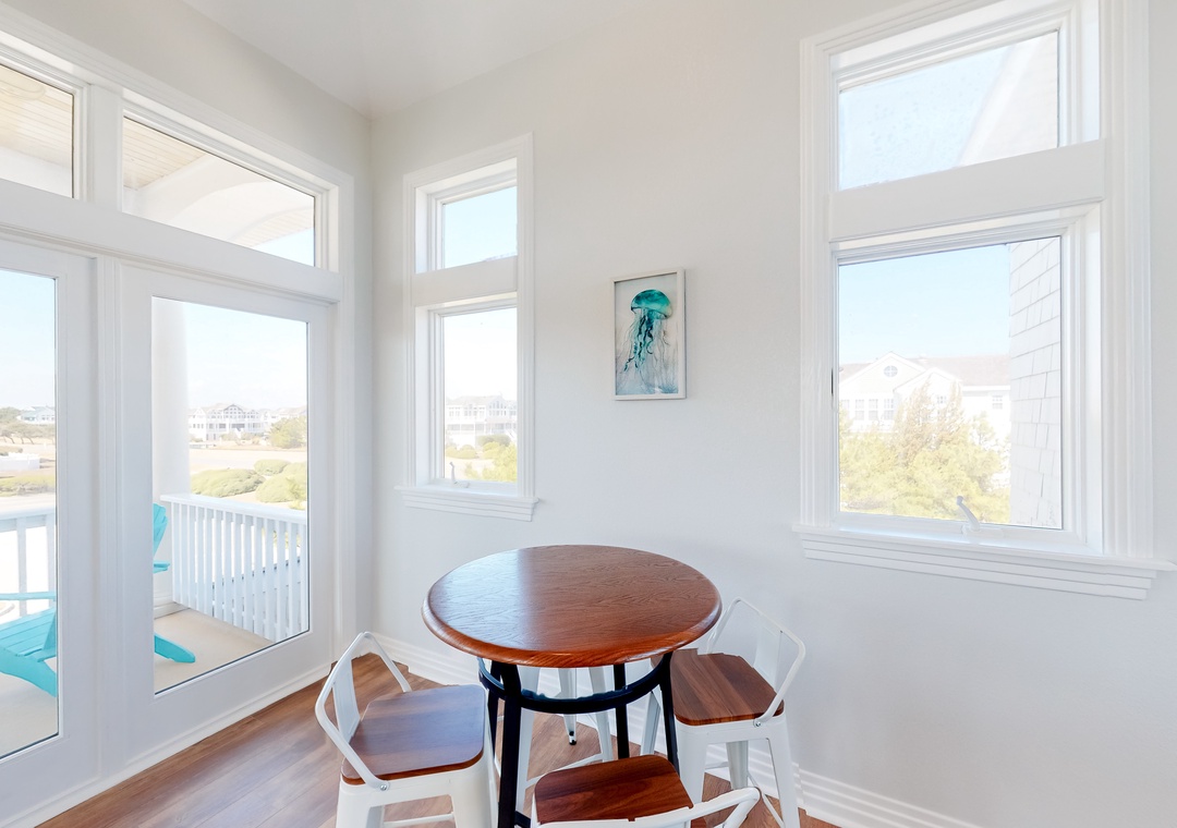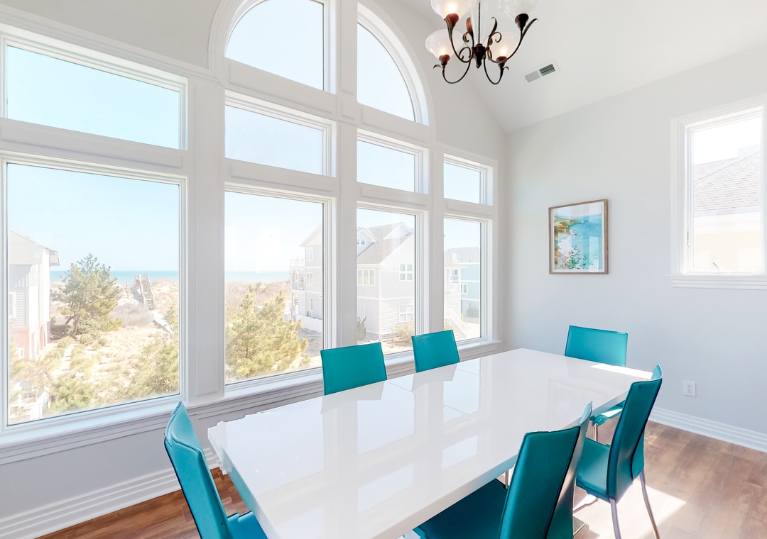 After Dune Delight is one of the finest oceanfront homes located in the desirable Buck Island community. You'll be just two miles from Corolla Beach and four miles from Currituck Beach Lighthouse, so you'll always have something fun to do during your stay. Enjoy sunrises over the Atlantic while having coffee on the top-level deck and delicious dinners in the spacious dining room while the sun sets over the Currituck Sound. This stunning home is located in a gated community within walking distance of shopping, restaurants, and entertainment. Families can indulge in evening activities like ice cream after dinner, feeding turtles in the ponds, go-karts, and kids' playground areas. Dune Delight will exceed your expectations of a relaxing and memorable beach experience.