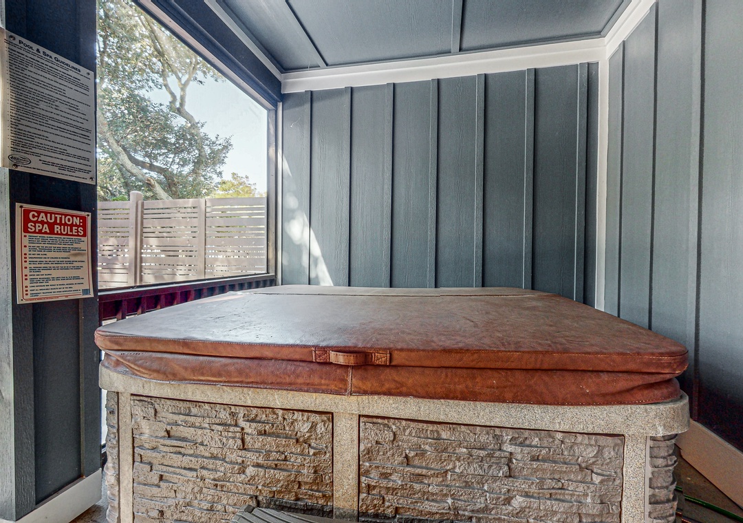 Step outside onto the balcony or patio to enjoy the fresh coastal air or fire up the gas grill for a delicious barbecue. Relax in the hot tub after a day of exploring the area or take a dip in the community indoor pool to cool off on a sunny afternoon. For those looking for some friendly competition, head to the tennis court or game room for some fun activities. Board games are also available for a relaxing evening indoors. Home includes Tommy Bahama beach chairs.
