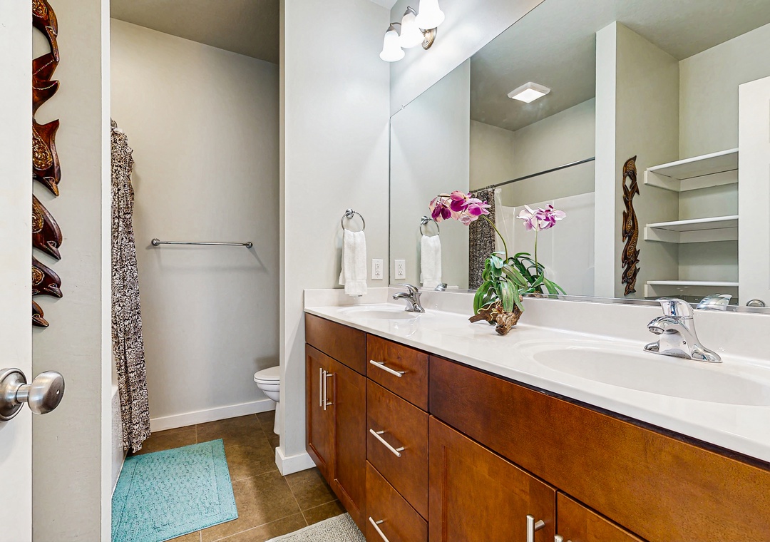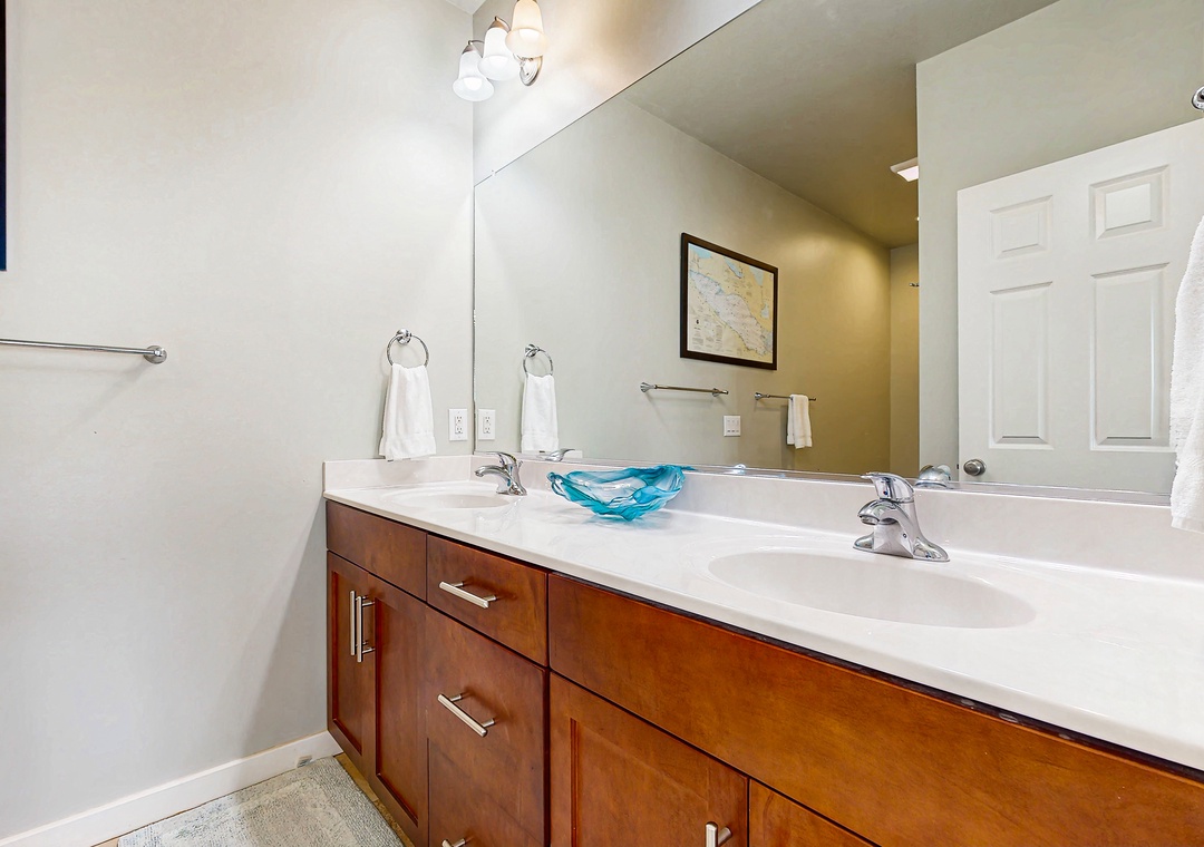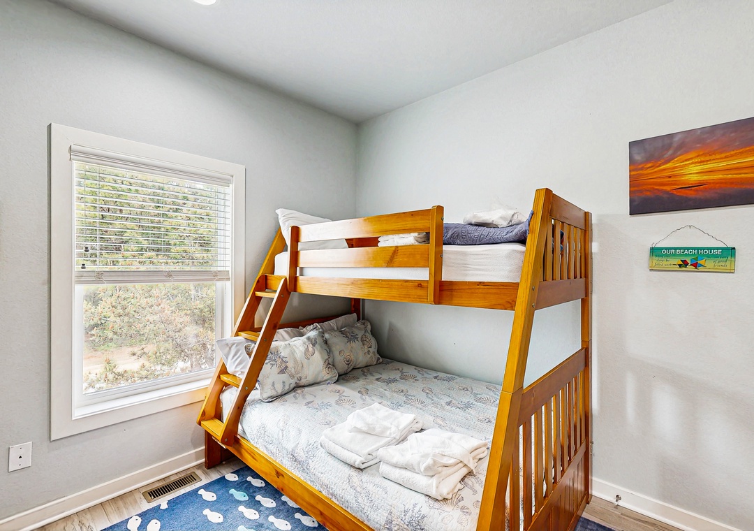 Mid Level: Here you will find a beautiful king main bedroom with a 32” flatscreen TV/DVD and deck access. There is another bedroom with a DuoBunk and a 26” flatscreen TV/DVD that shares a full bath with a king bedroom with a 26” flatscreen TV/DVD. The laundry room is also located on this level.