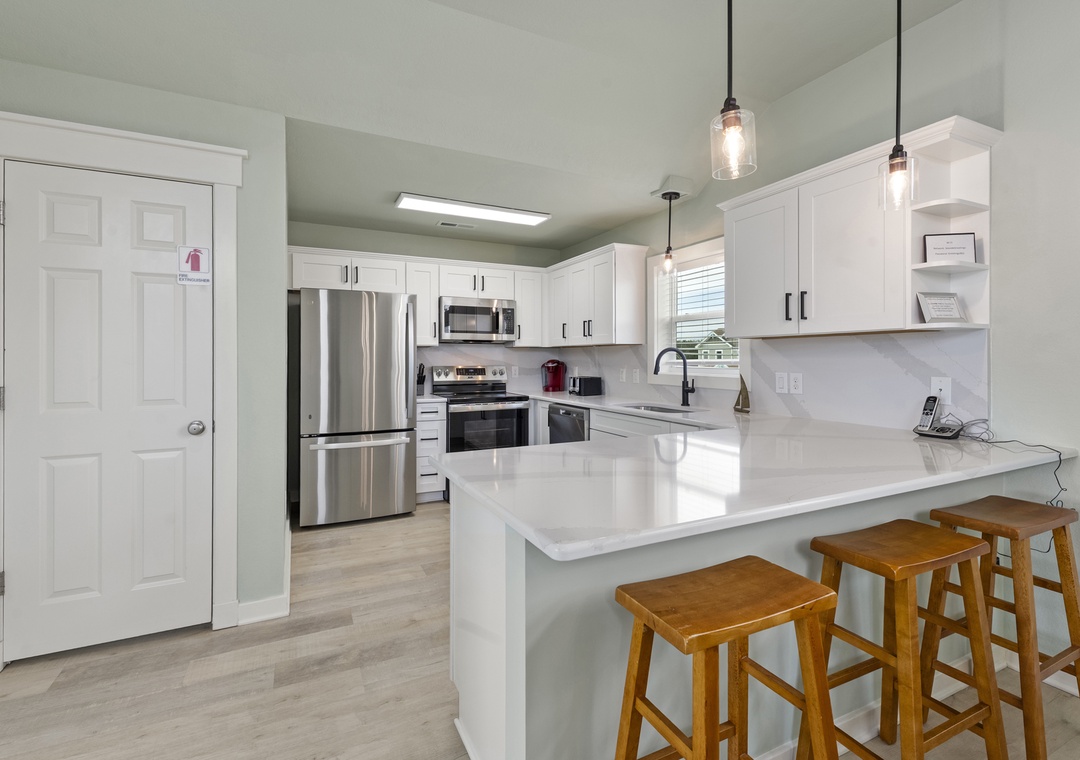 New for 2026: Upgraded Kitchen! The fully equipped kitchen now features fresh updates alongside granite countertops, stainless steel appliances, a breakfast bar, and everything you need for easy home-cooked meals all week long.