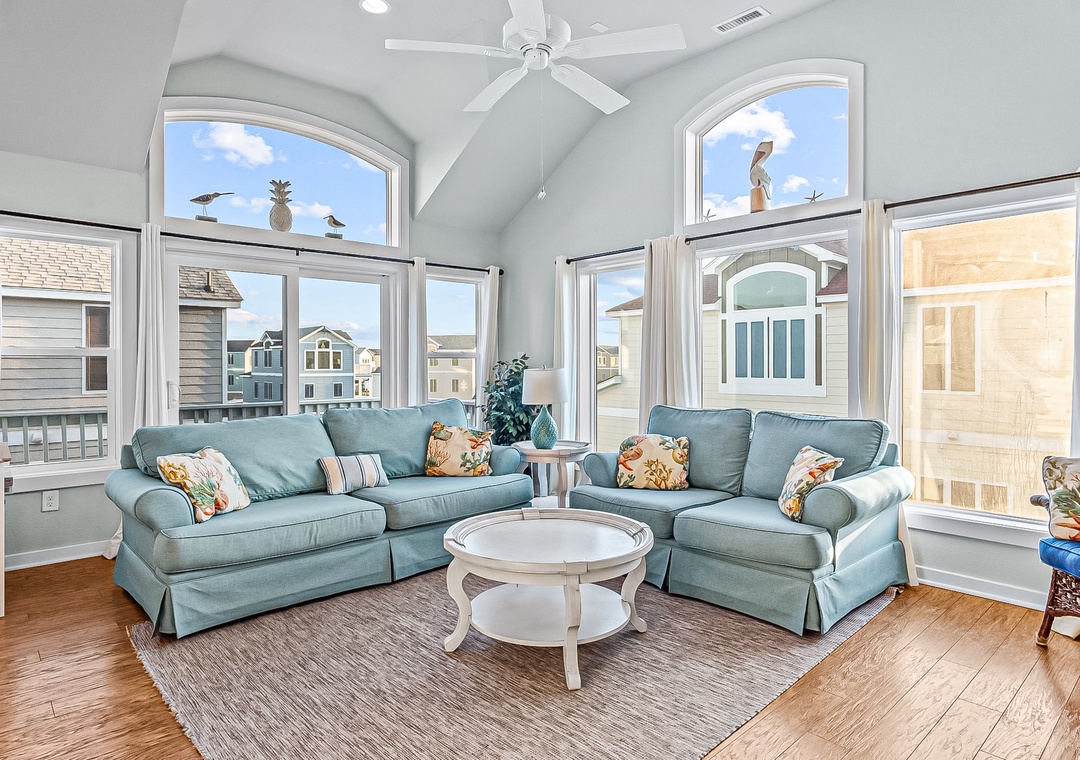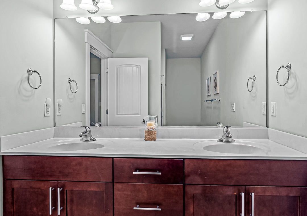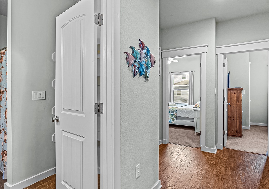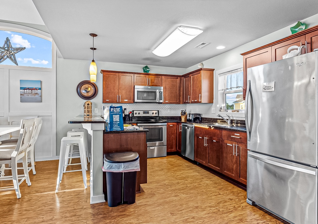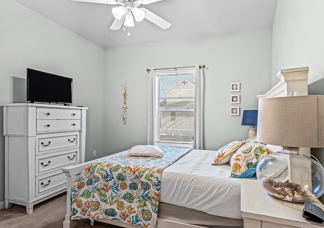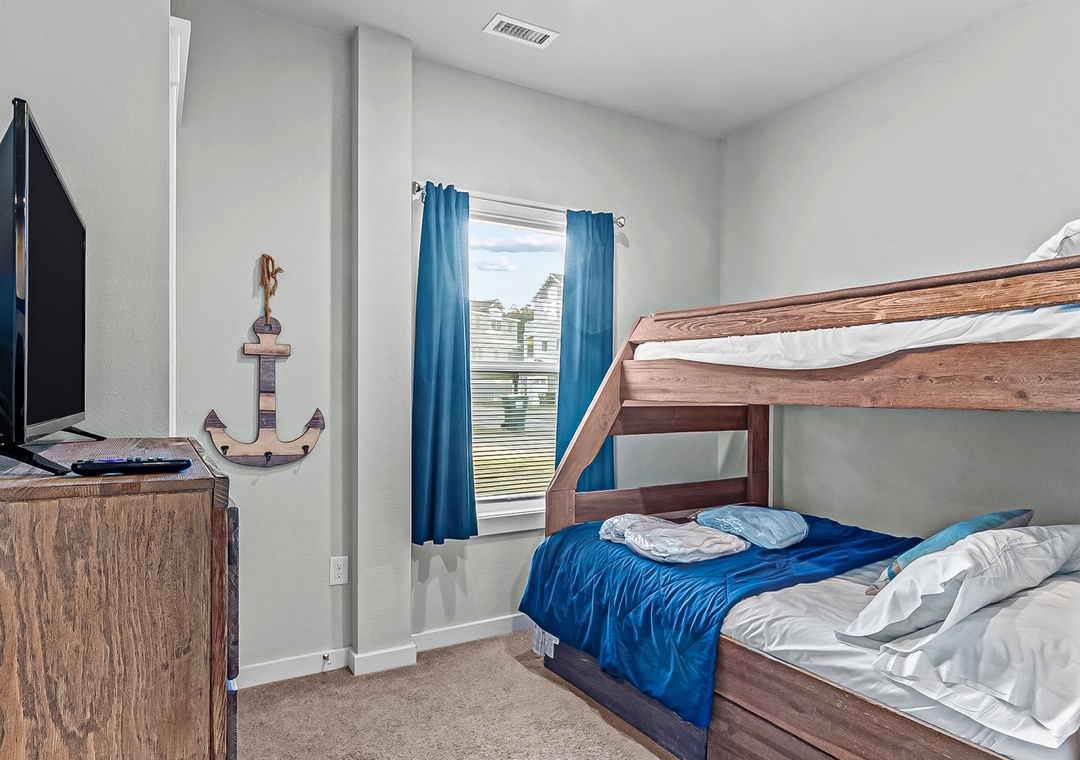 The home's four bedrooms are adorned with nautical-themed decor pieces, central air, and their own TVs with Roku sticks. The perks don't end there though! A private washer/dryer and high speed internet access round out the interior amenities.