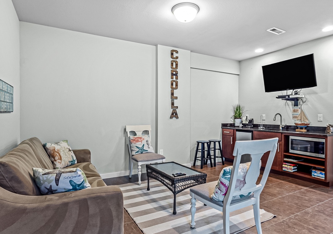 Outside, enjoy the Corolla sunshine, relax and unwind in the hot tub or take a dip in the pool, all while enjoying the comforts of this home. The beach and sound side are only a 5 minute walk away on a paved pathway, where you can soak up the sun and enjoy the uncrowded beaches.